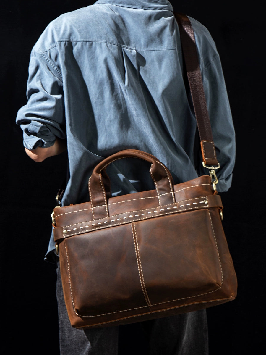 Additionally, a laptop messenger bag excels in its organizational capabilities. These bags are thoughtfully designed with multiple compartments, pockets, and dividers that allow you to neatly store not only your laptop but also a range of accessories, documents, and personal items. From chargers and cables to notebooks, pens, and even a water bottle, everything finds its place within the bag. This level of organization not only streamlines your daily routine but also ensures that you have quick and easy access to all the essentials you need throughout the day.