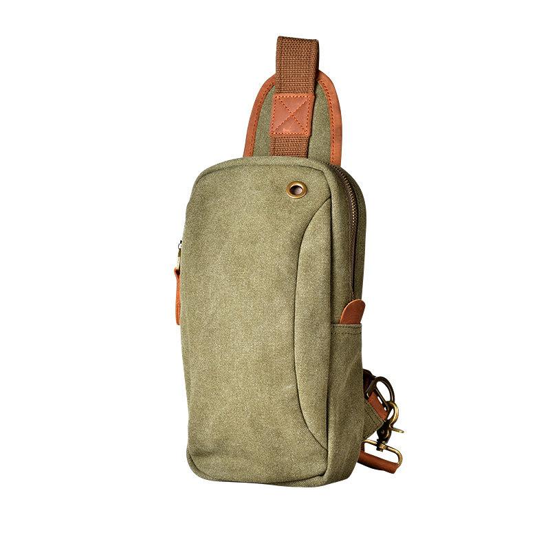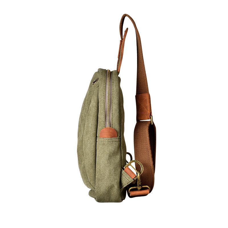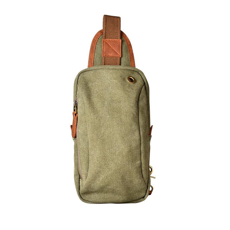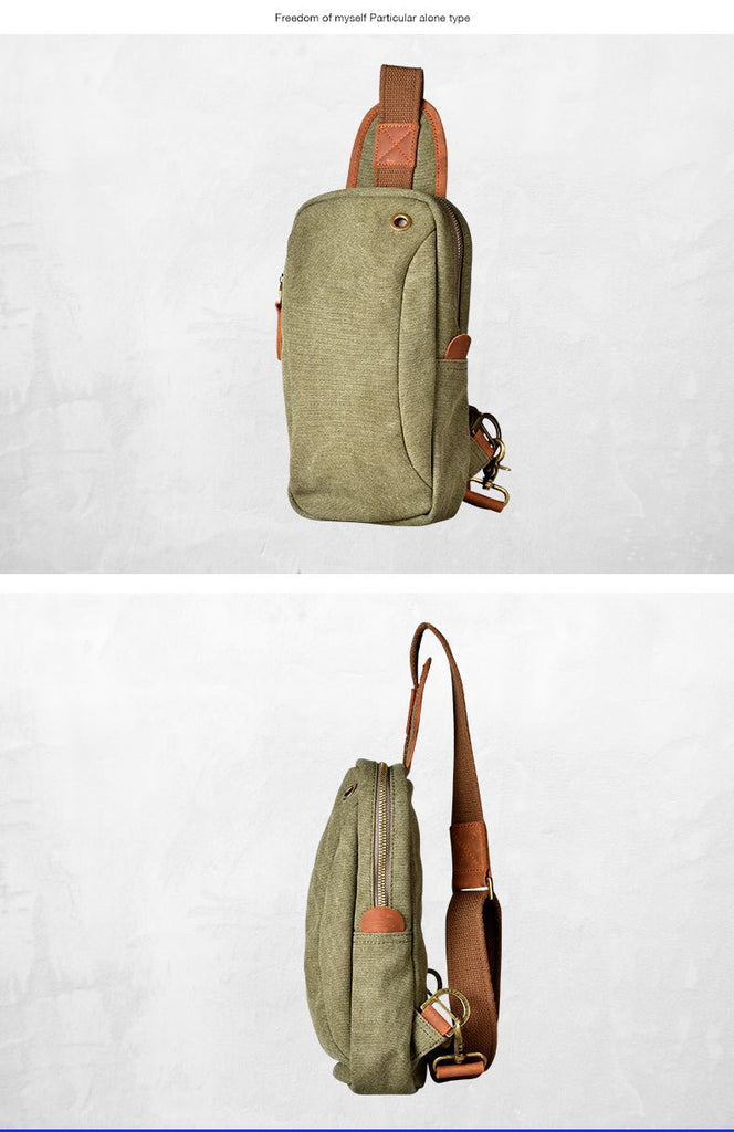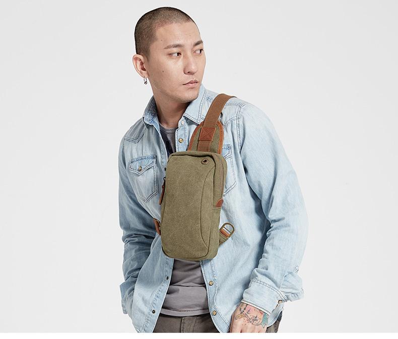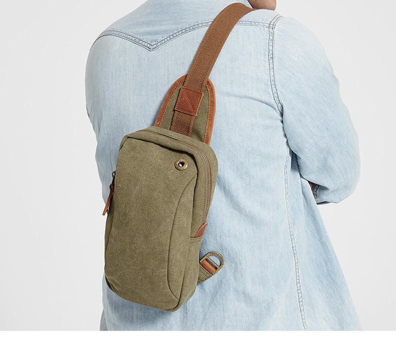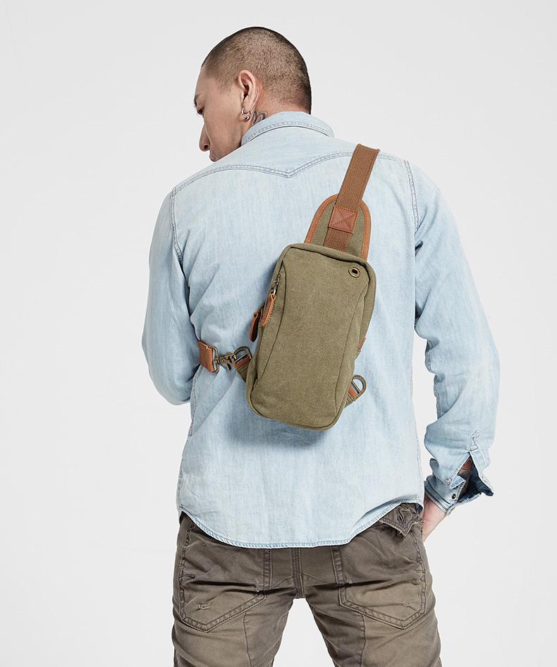 Design: Army Green Canvas Sling Backpack Men's Sling Bag Blue Chest Bag Canvas One shoulder Backpack For Men