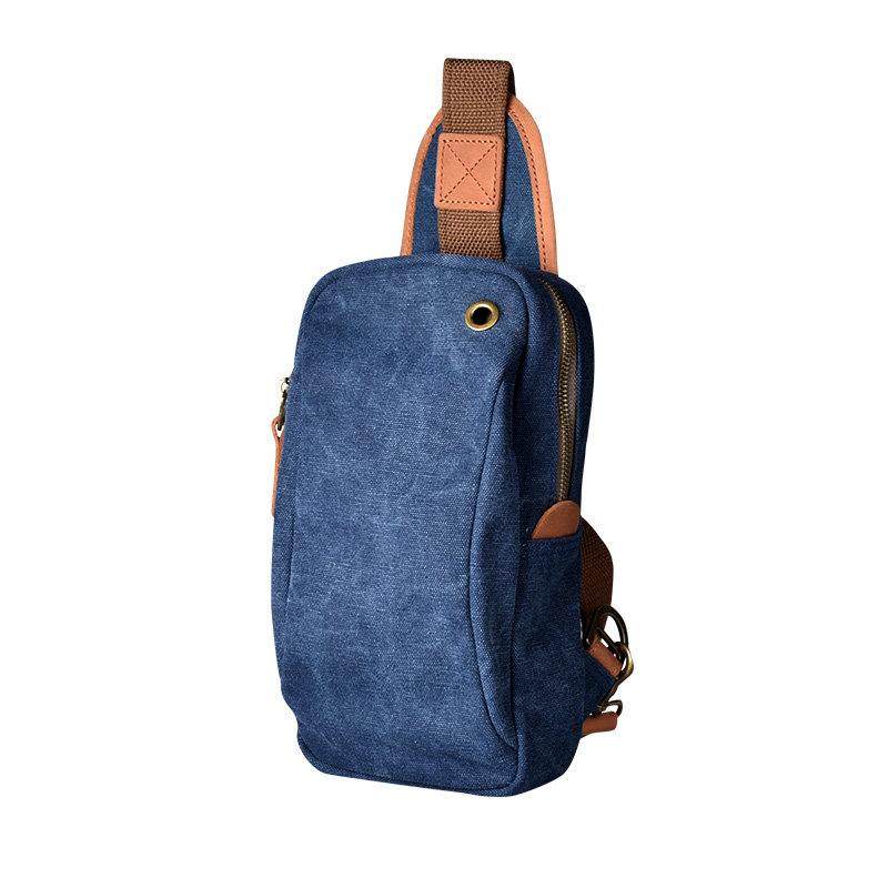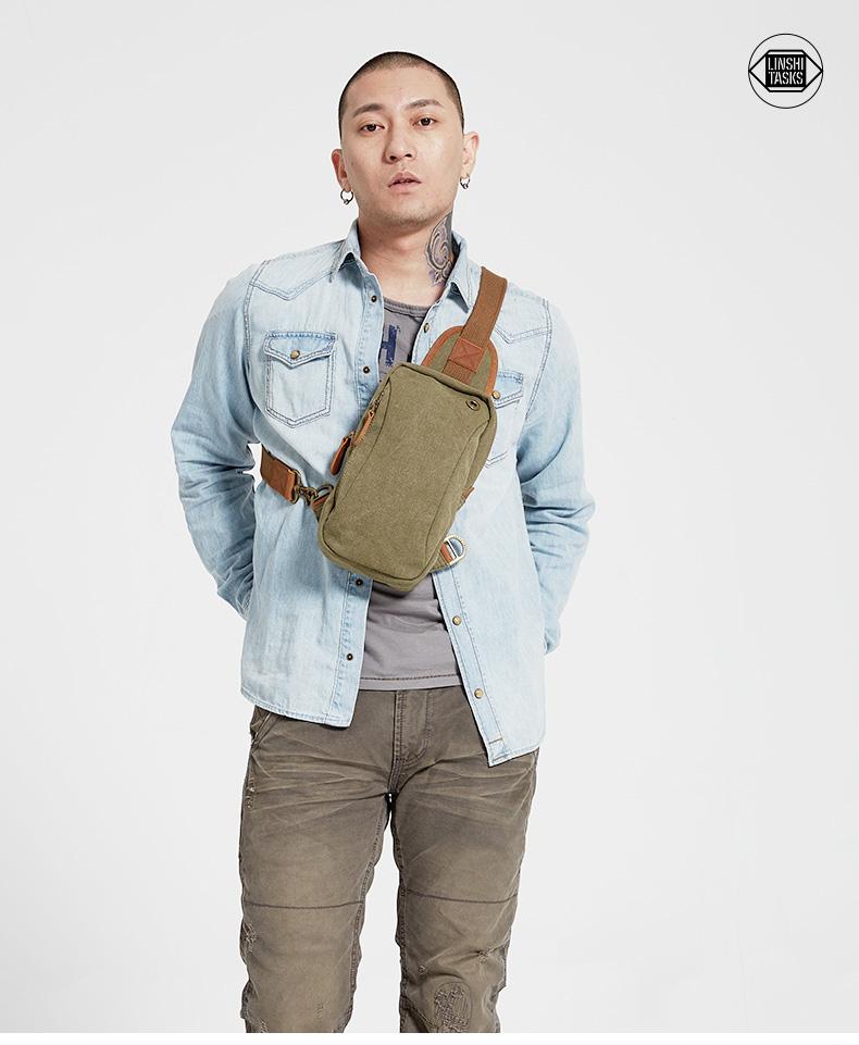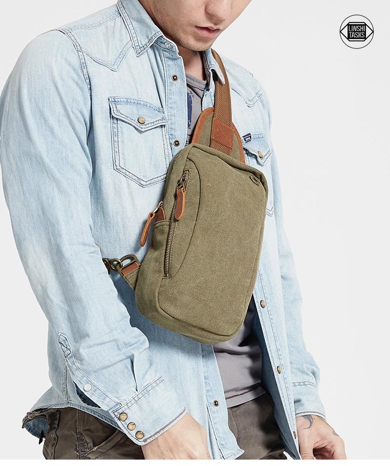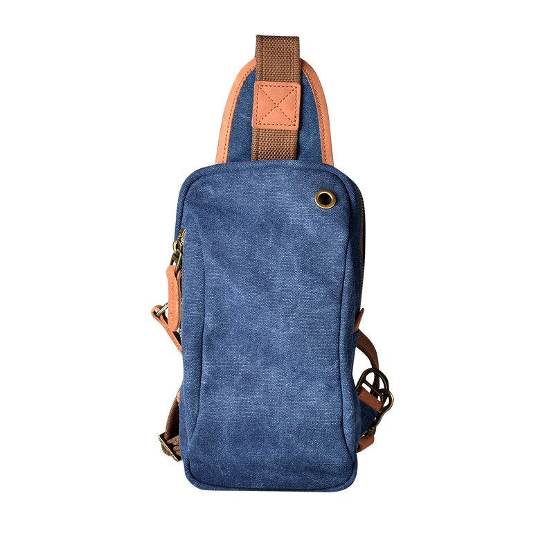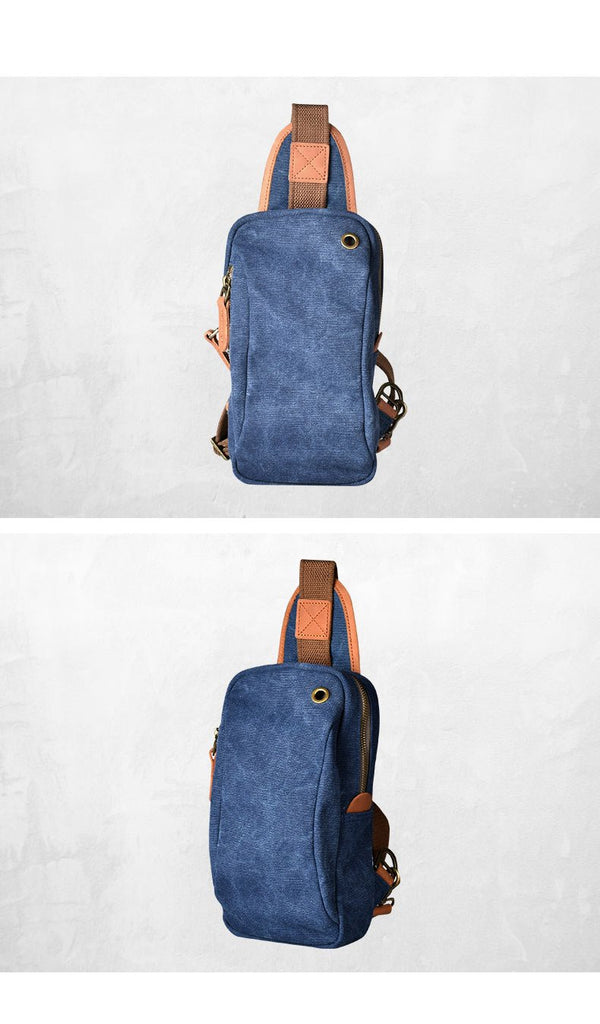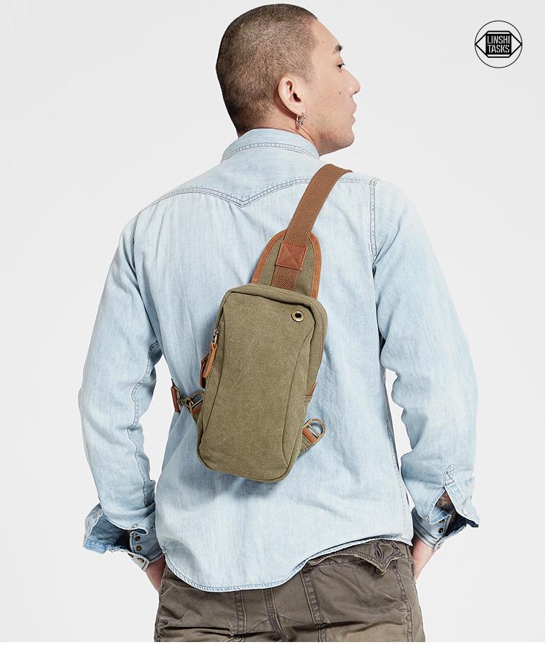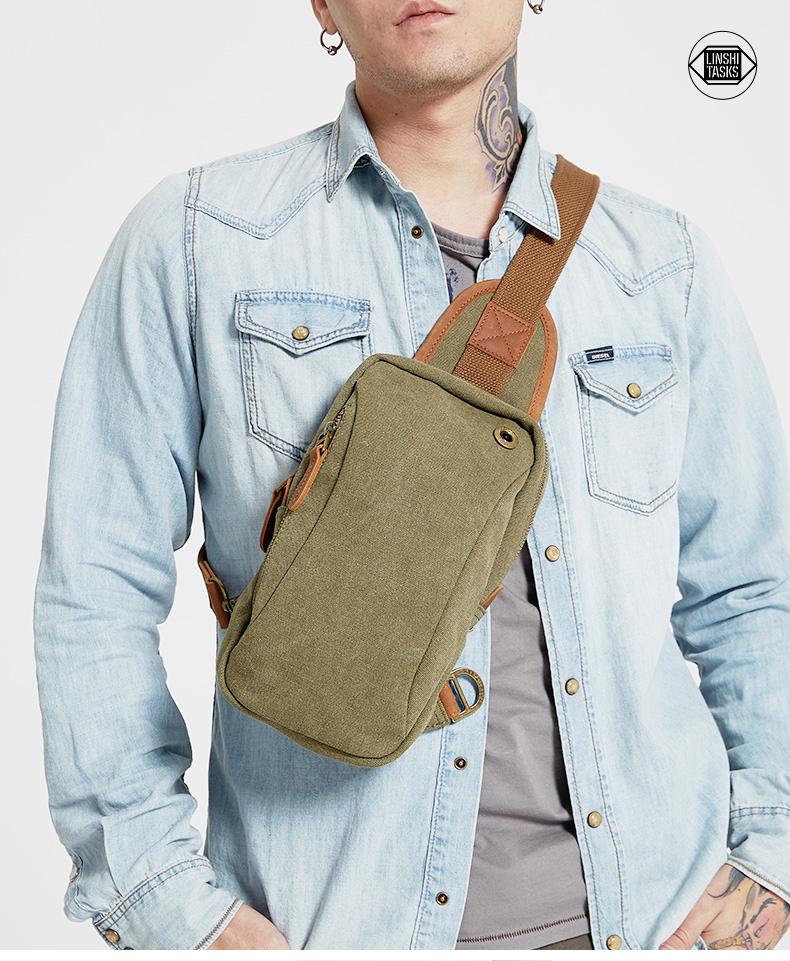 Design: Army Green Canvas Sling Backpack Men's Sling Bag Blue Chest Bag Canvas One shoulder Backpack For Men