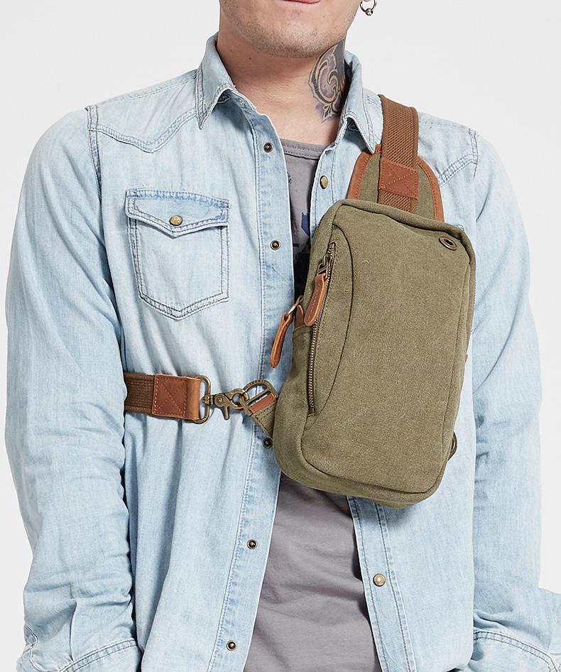 Style: Army Green Canvas Sling Backpack Men's Sling Bag Blue Chest Bag Canvas One shoulder Backpack For Men