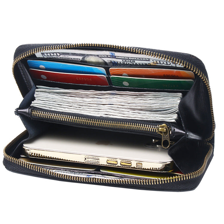 Design: Around Zip Leather Long Wallet Mens Minimalist Zipper Clutch Wallet for Men