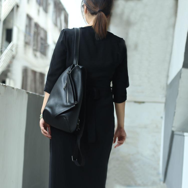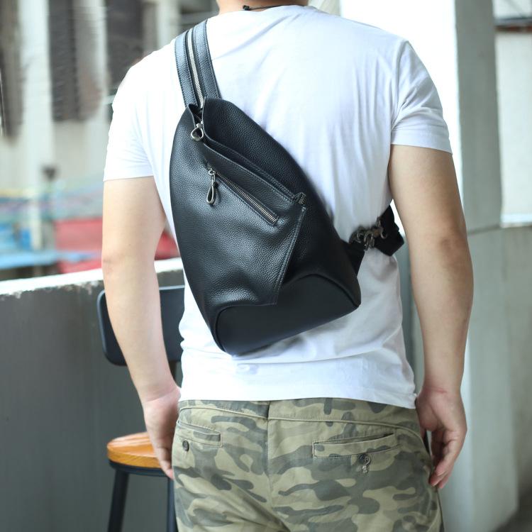 Design: Badass Black Leather 10 inches Men's Sling Bag Chest Bag One shoulder Backpack Sling Bag For Men