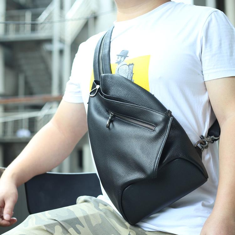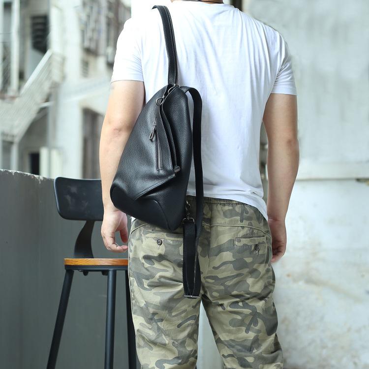 Style: Badass Black Leather 10 inches Men's Sling Bag Chest Bag One shoulder Backpack Sling Bag For Men