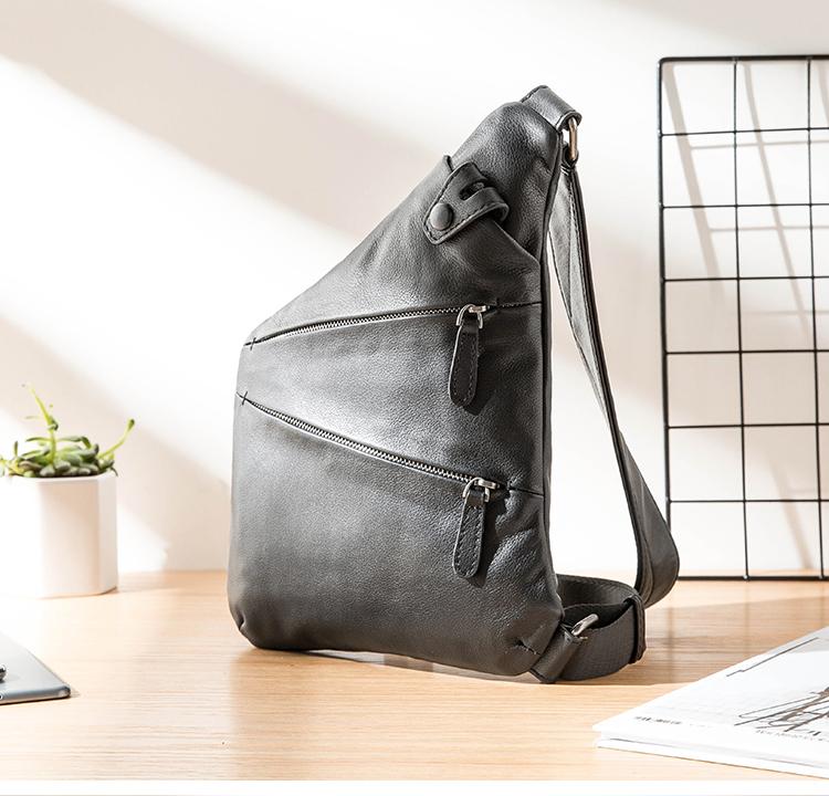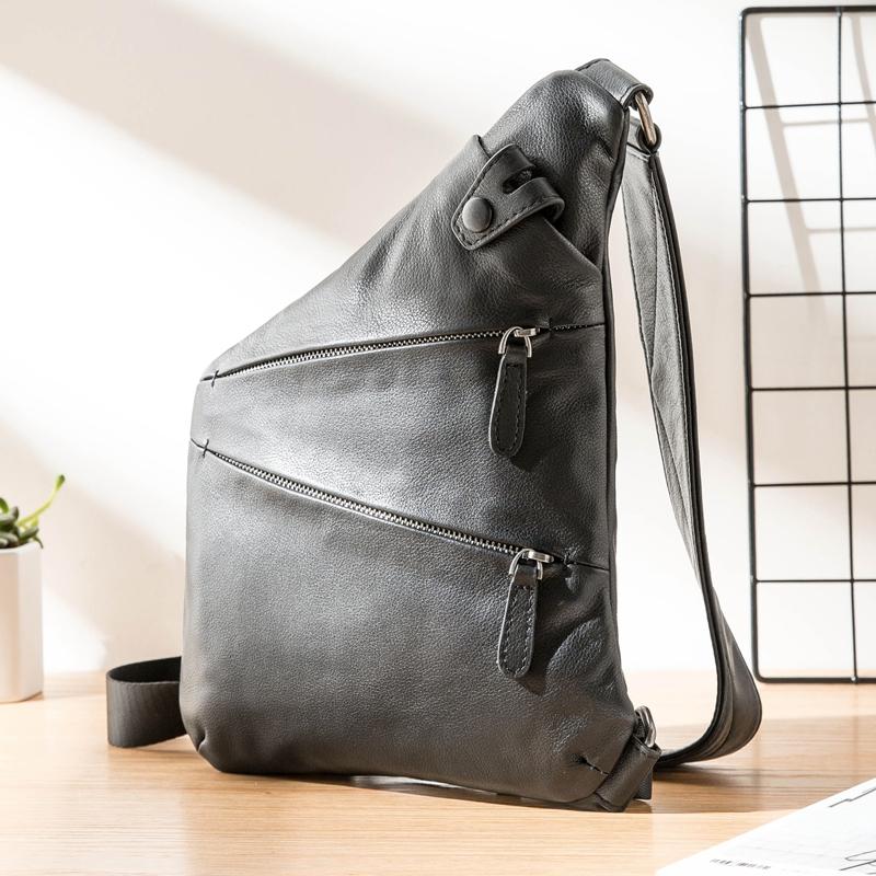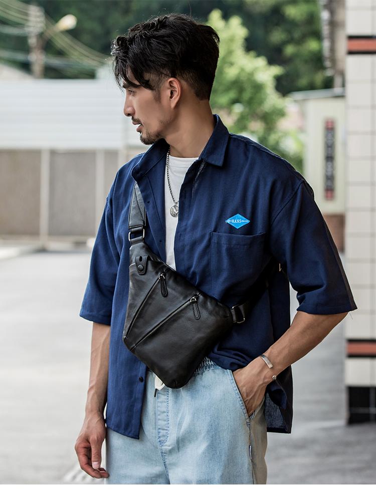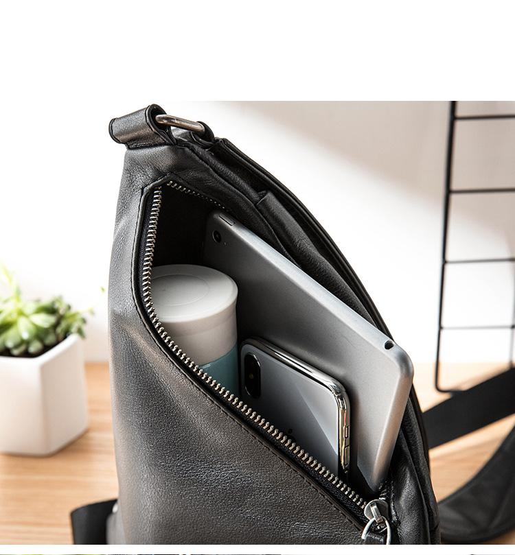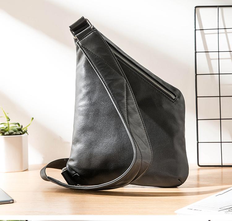 Style: Badass Black Leather Backpack Men's 8-inch Sling Bag Chest Bag One shoulder Backpack Bundy Bag For Men