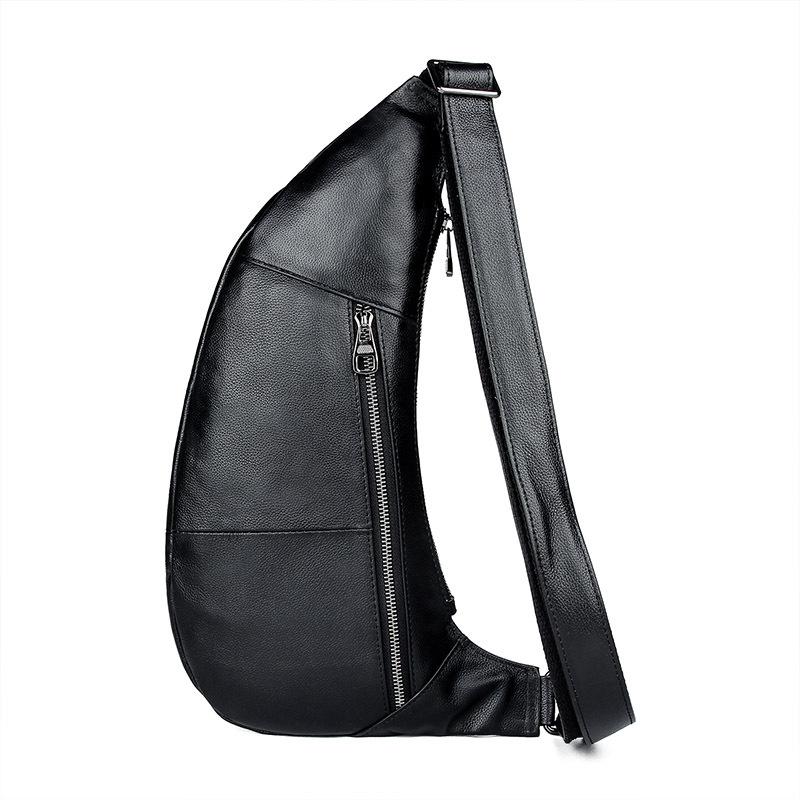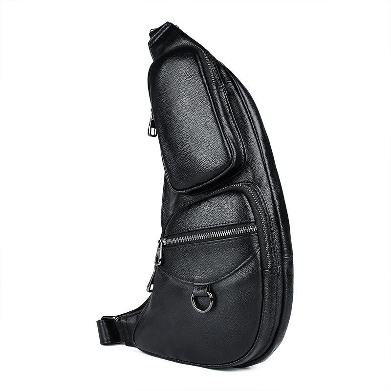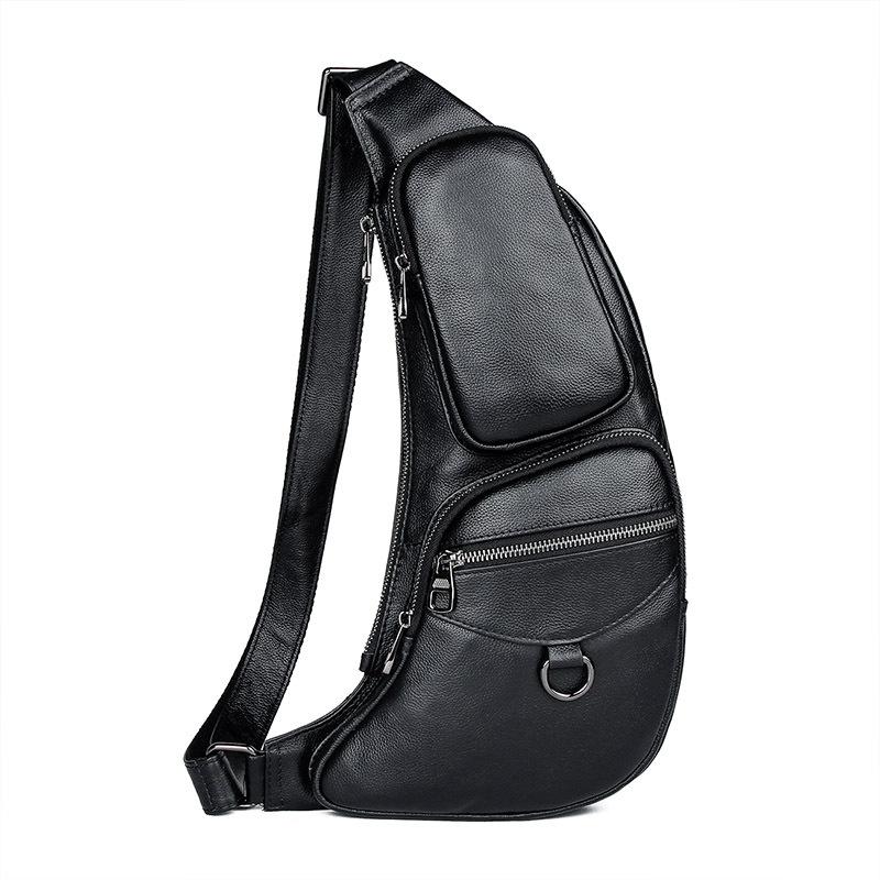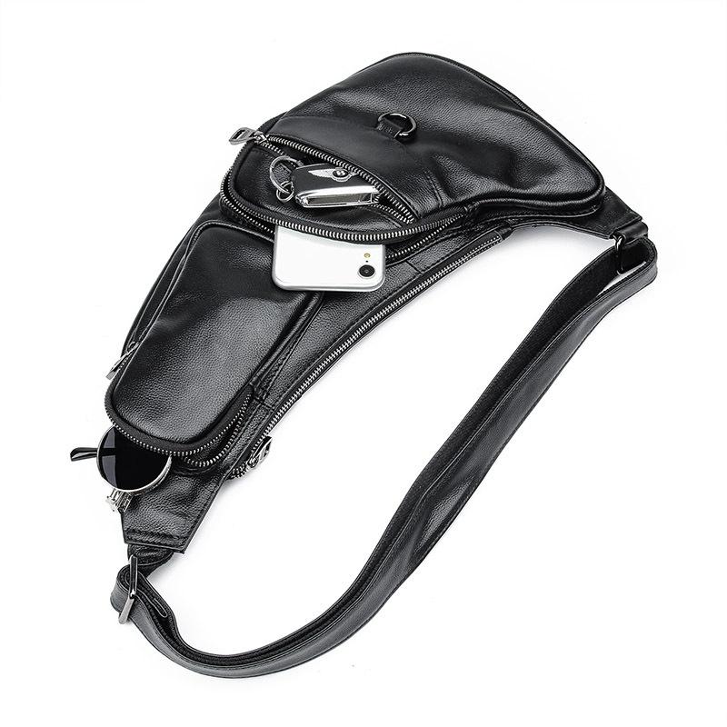 Style: Badass Black Leather Backpack Men's Sling Bag Chest Bag One shoulder Backpack Sports Bag For Men