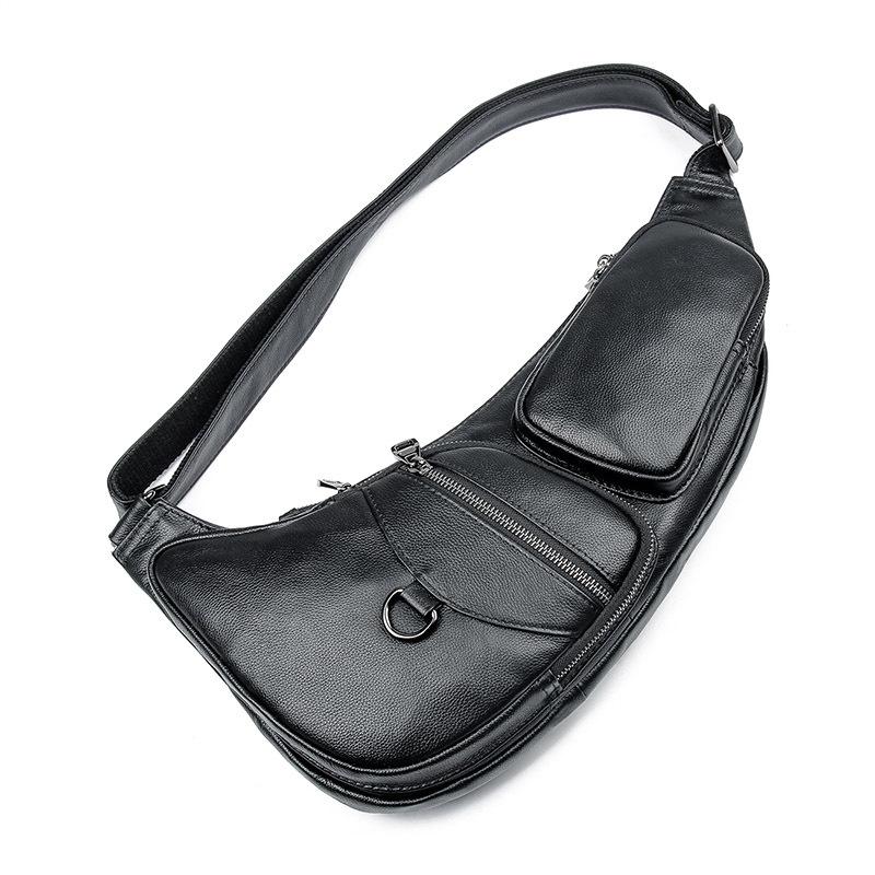 Design: Badass Black Leather Backpack Men's Sling Bag Chest Bag One shoulder Backpack Sports Bag For Men