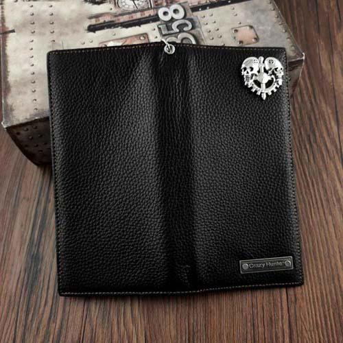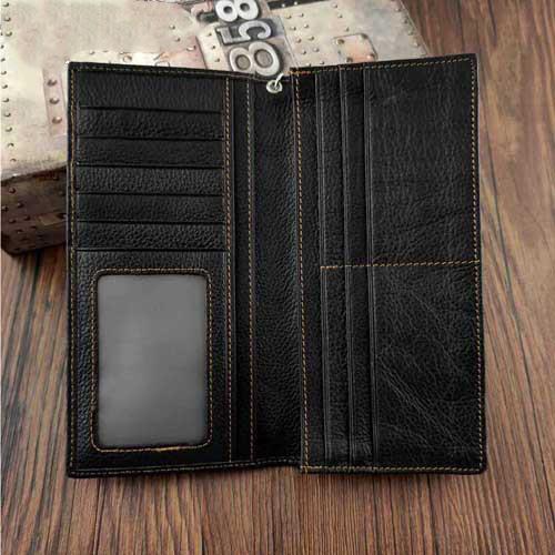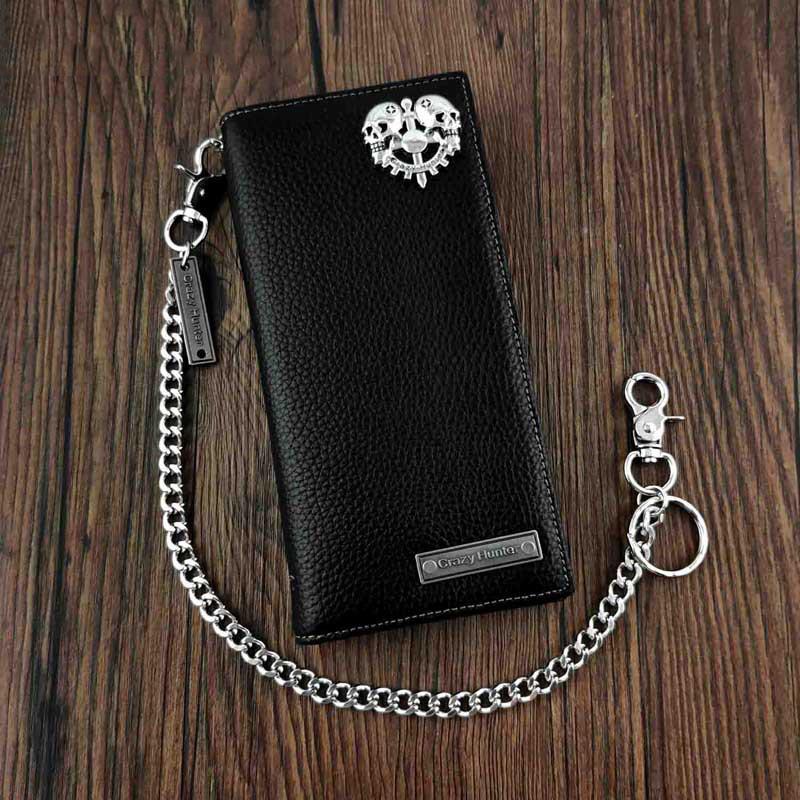 Design: Badass Black Leather Men's Punk Long Biker Chain Wallet Long Wallet Chain For Men