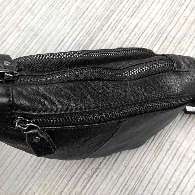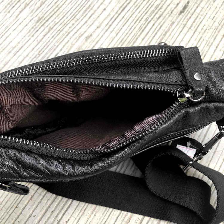 Style: Badass Black Leather Men's Sling Bag Chest Bag One shoulder Backpack Phone Bag For Men