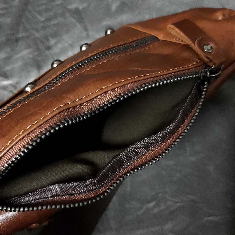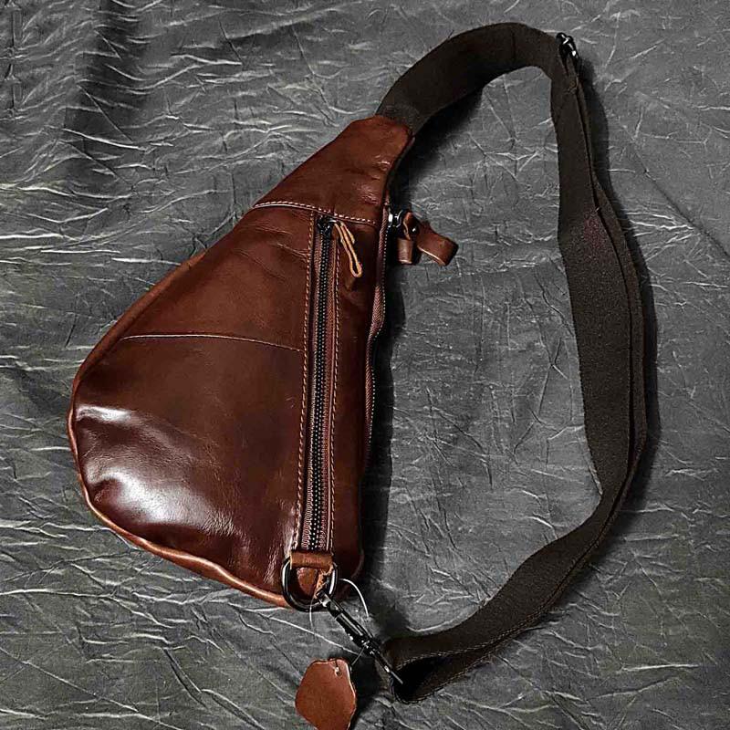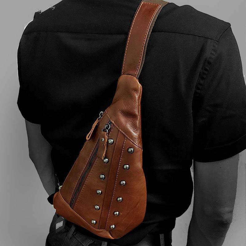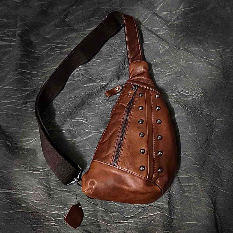 Style: Badass Brown Leather Men's Sling Bags Chest Bag One shoulder Backpack Sling Bag For Men