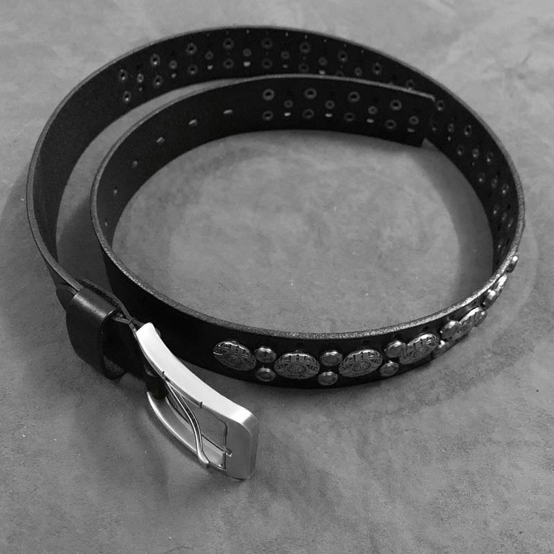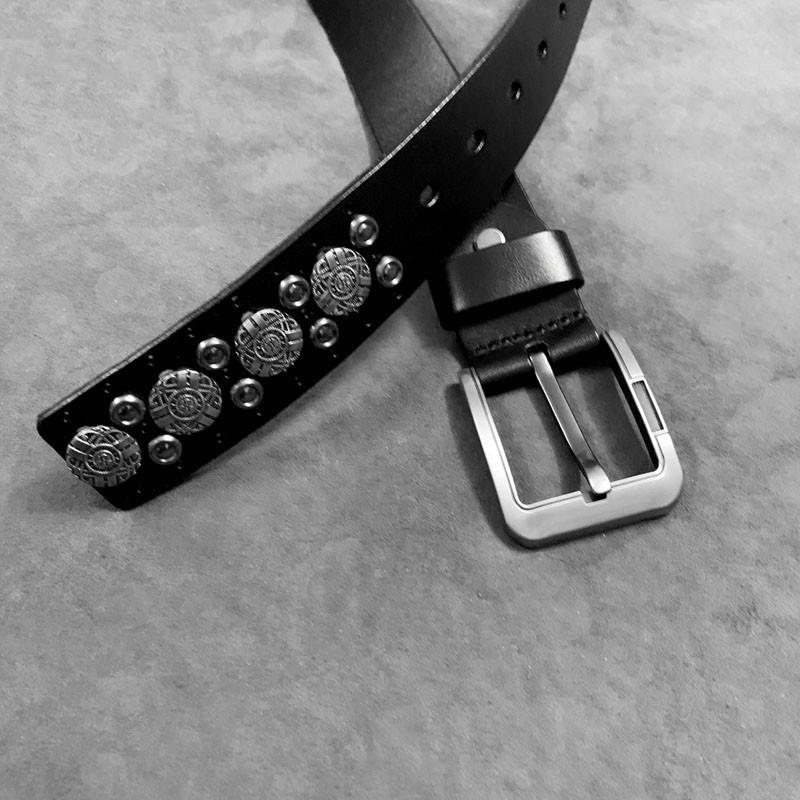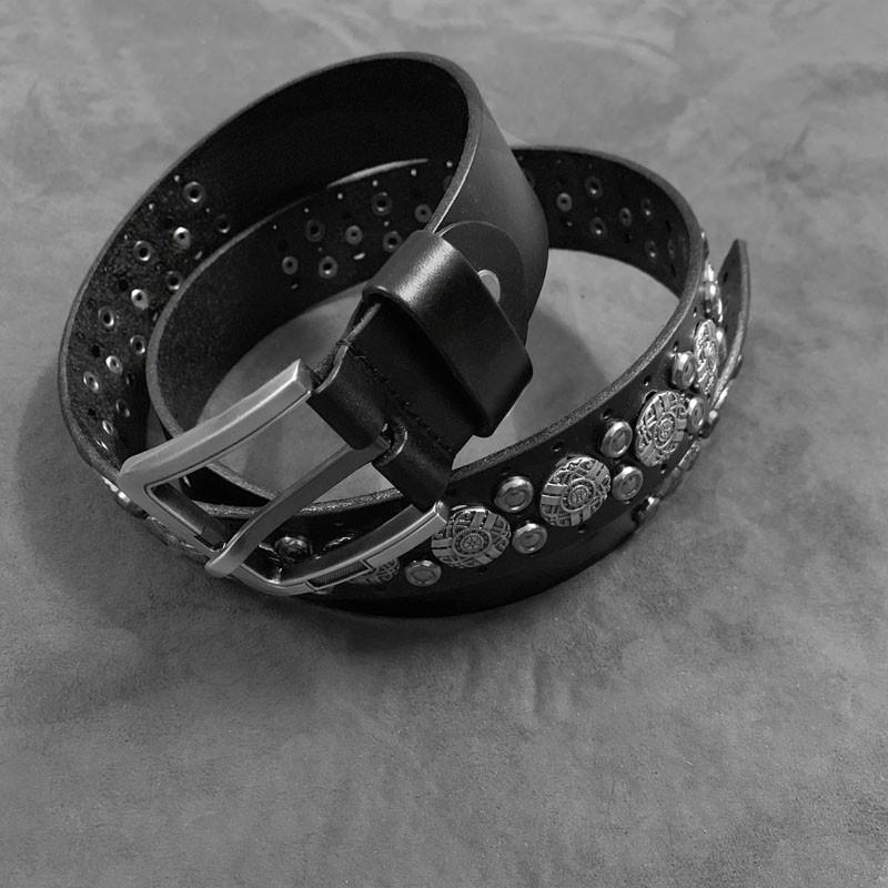 Design: Badass Black Leather Metal Rock Punk Belt Black Motorcycle Belt Leather Rivet Belts For Men