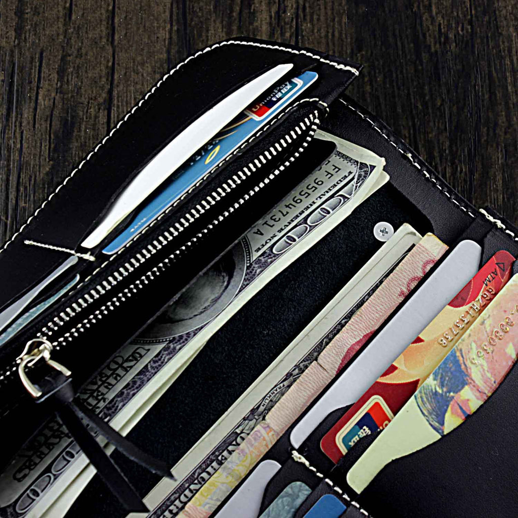 Design: Badass Black Leather Men's Long Biker Chain Wallet Tooled Long Wallet with Chain For Men