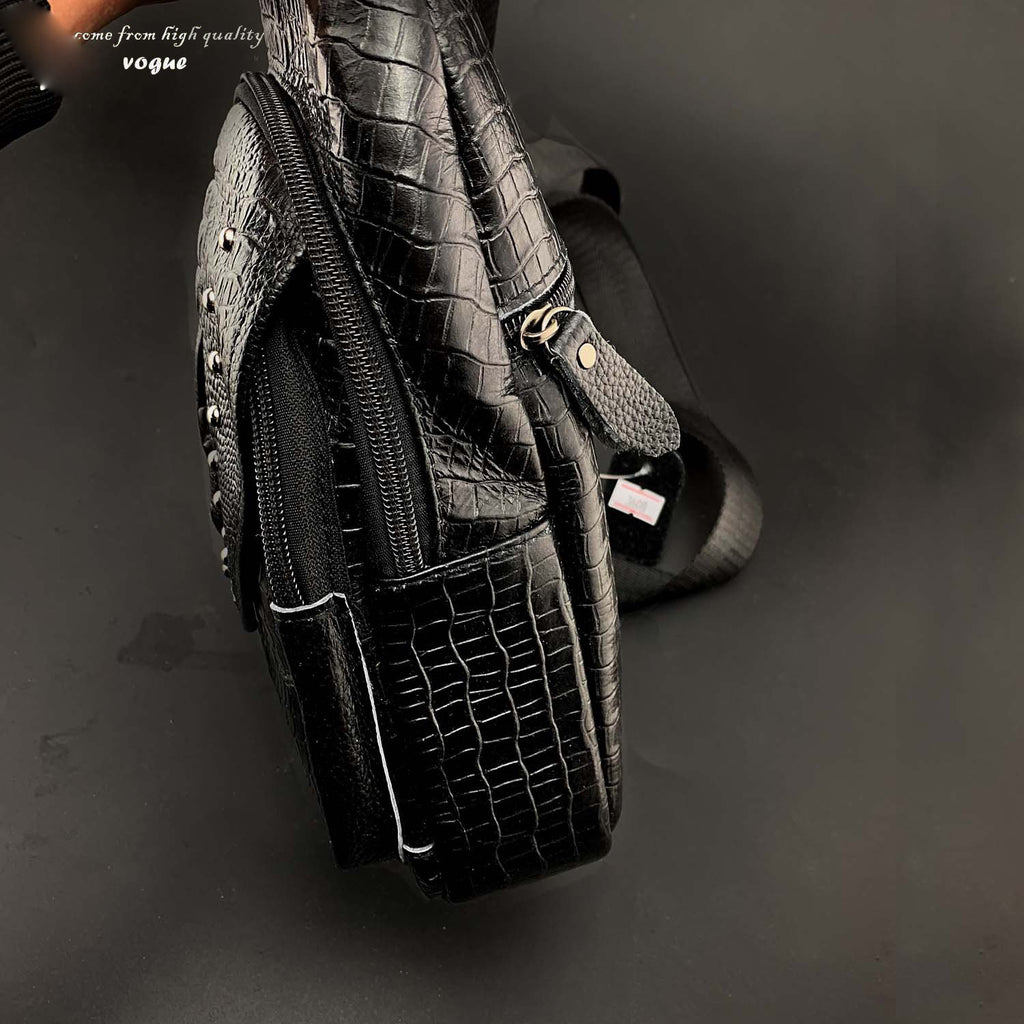 Style: Badass Black Leather Men's Sling Bag Chest Bag One shoulder Backpack Sling Bag For Men