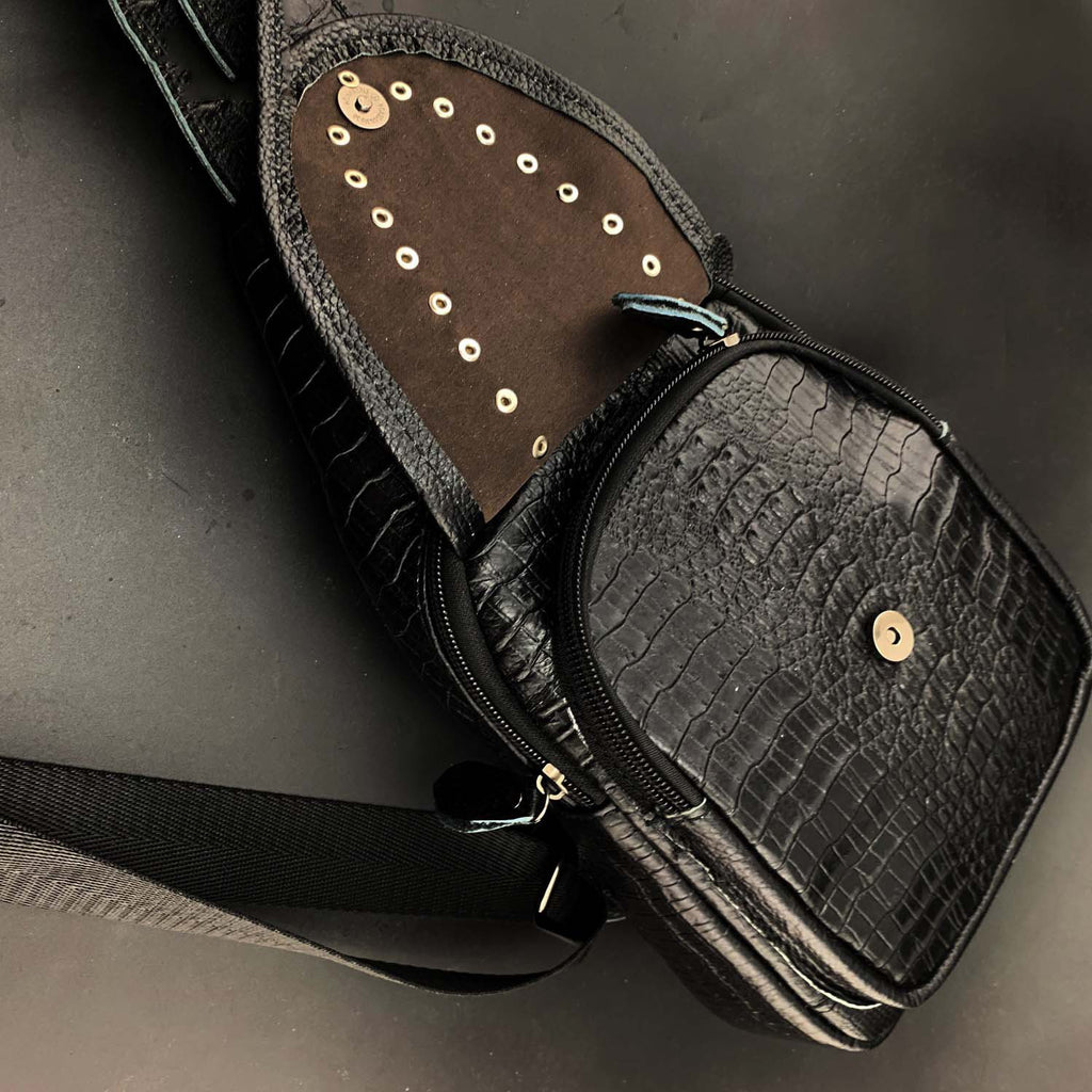 Design: Badass Black Leather Men's Sling Bag Chest Bag One shoulder Backpack Sling Bag For Men