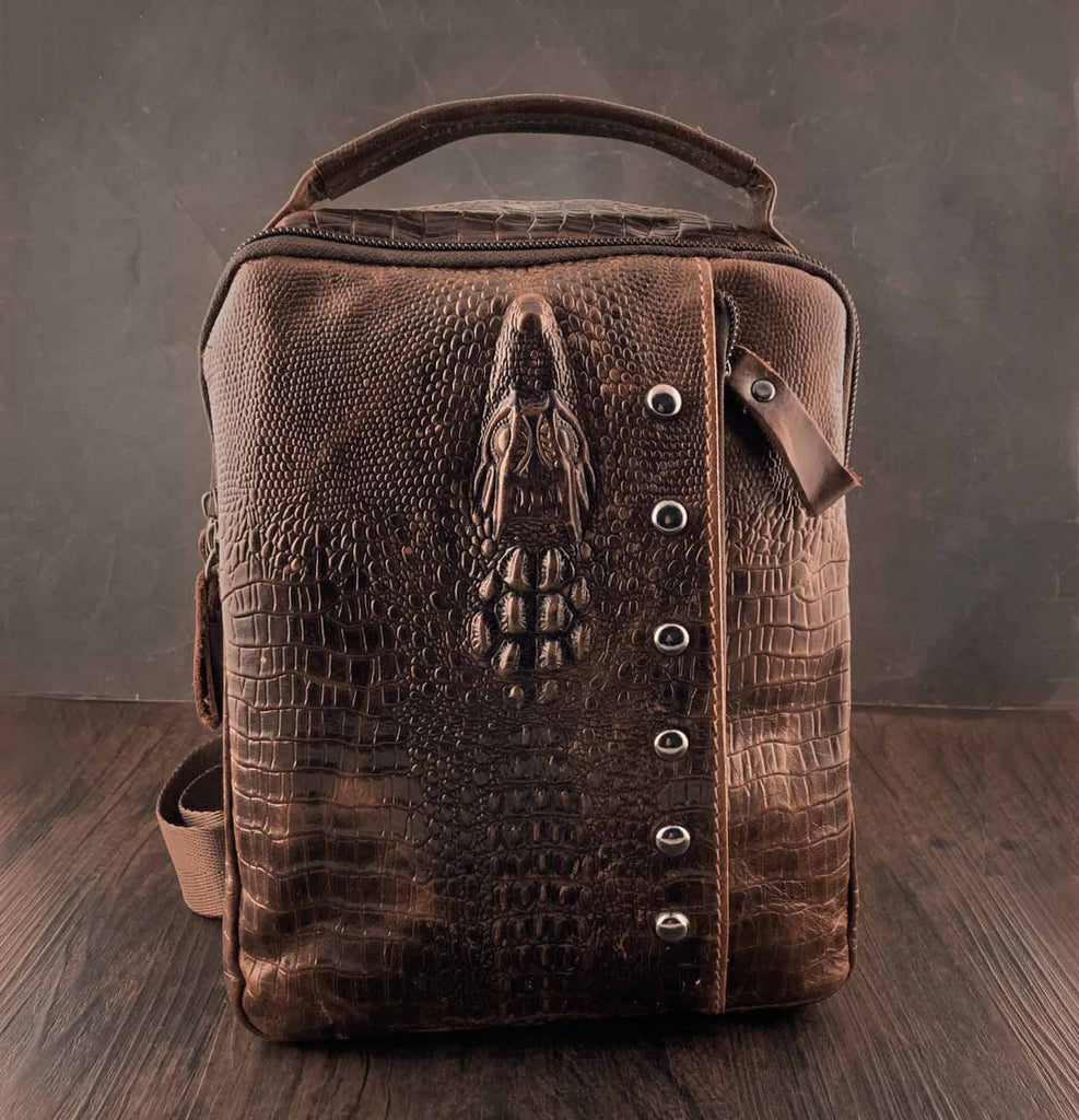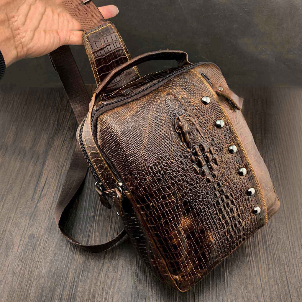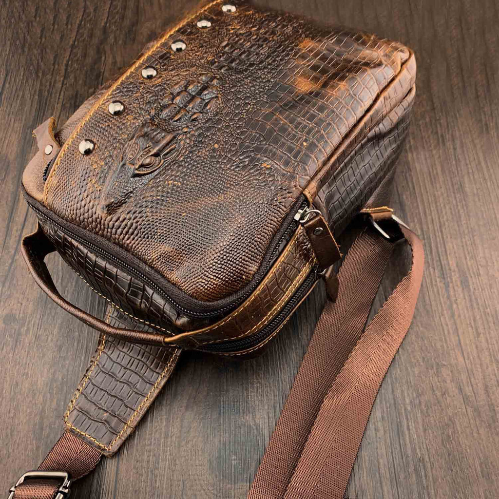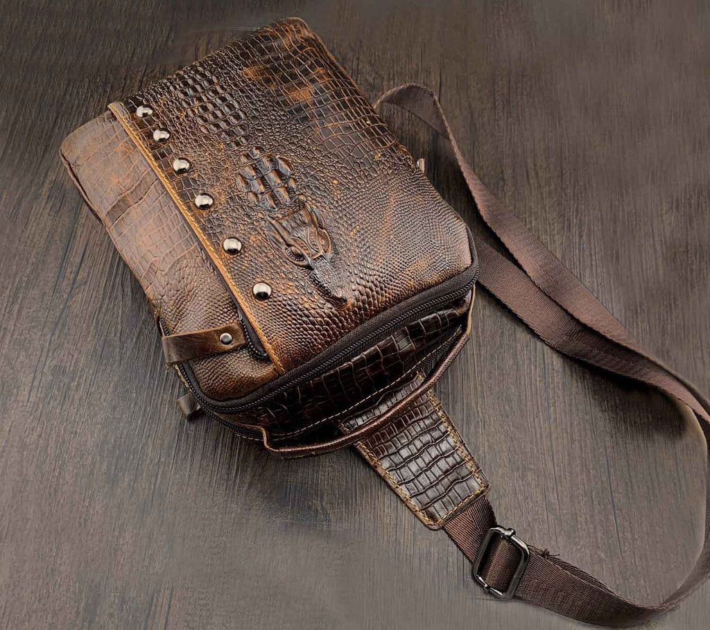 Design: Badass Brown Leather Men's Sling Bag Chest Bag One shoulder Backpack Sling Bag For Men