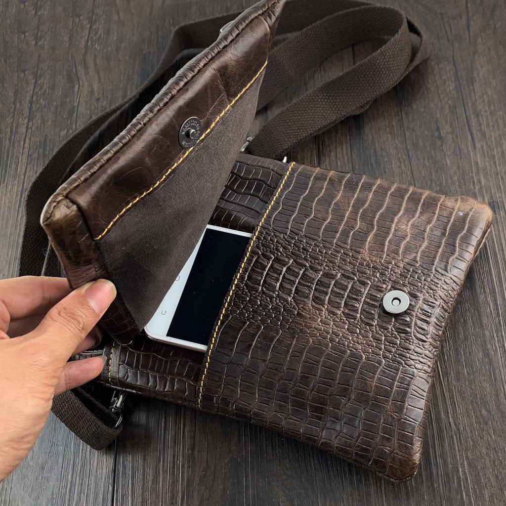 Design: BADASS BROWN LEATHER MENS SMALL VERTICAL SHOULDER BAG SIDE BAG COURIER BAG MESSENGER BAG FOR MEN