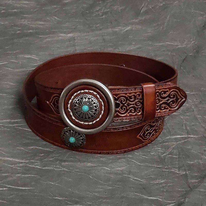 Design: Fashion Red Brown Leather Metal Belt Motorcycle Belt Leather Round Belts For Men