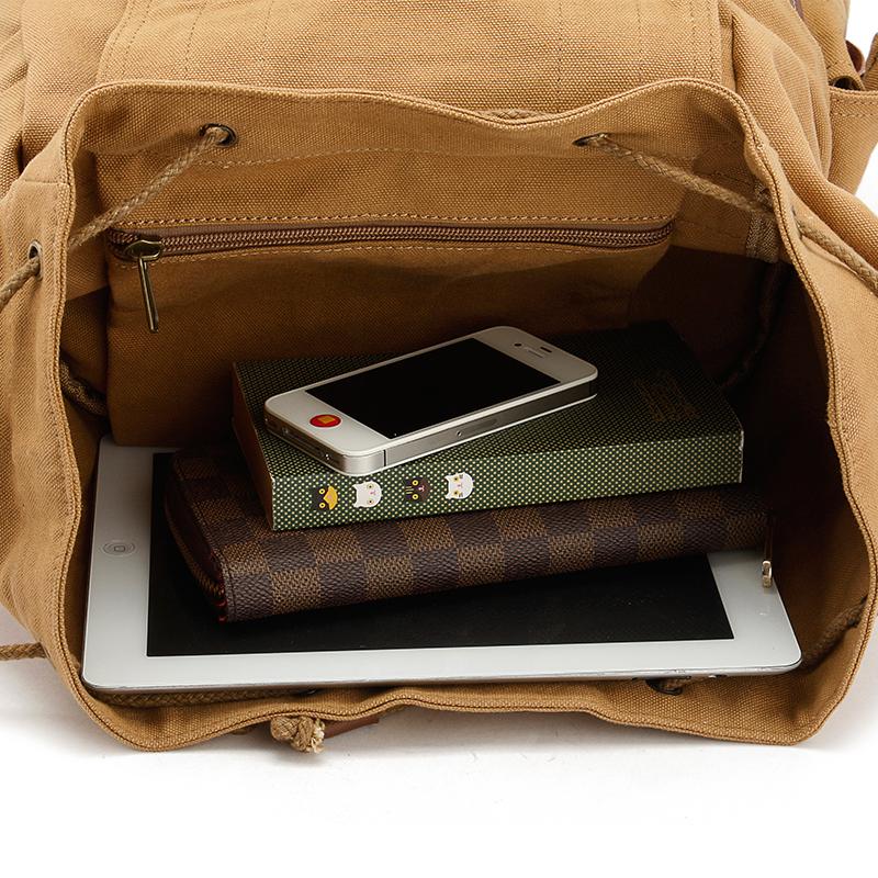 Design: Khaki CANVAS WATERPROOF Womens 15'' MENS BACKPACK LARGE School Backpack Hiking Backpack FOR MENCAMERA BAG FOR MEN