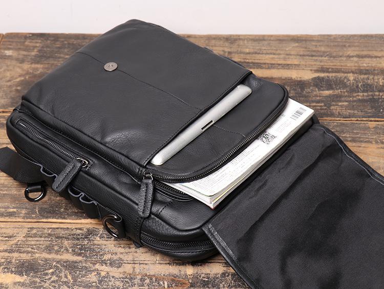 Design: BLACK Vertical LEATHER MEN'S Messenger Bag Side Bag BACKPACK Work Handbag Briefcase FOR MENOverview: