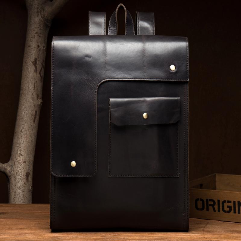 Black Fashion Mens Leather 14-inch Computer Backpack Dark Brown Satchel Backpacks School Backpacks for men