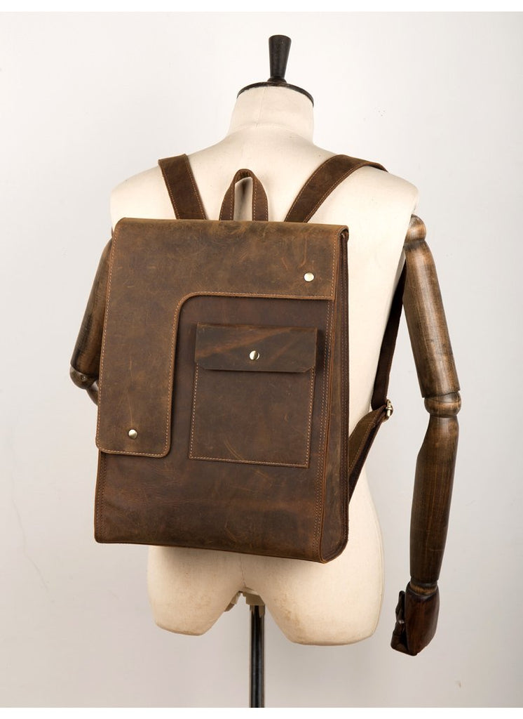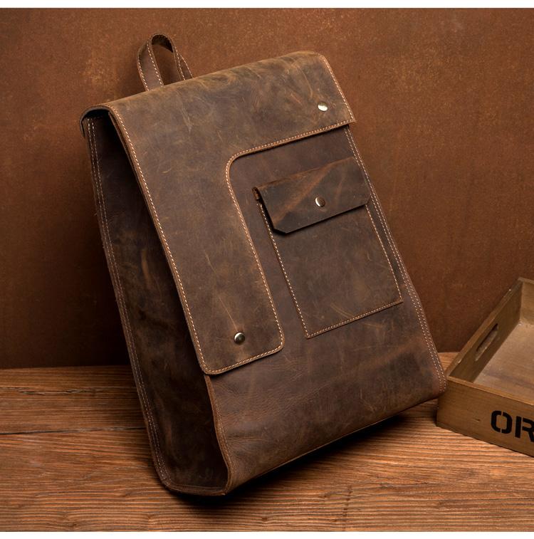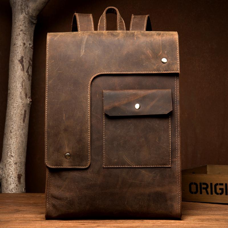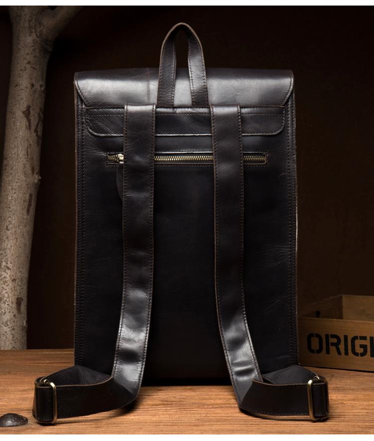 Design: Black Fashion Mens Leather 14-inch Computer Backpack Dark Brown Travel Backpacks School Backpacks for men