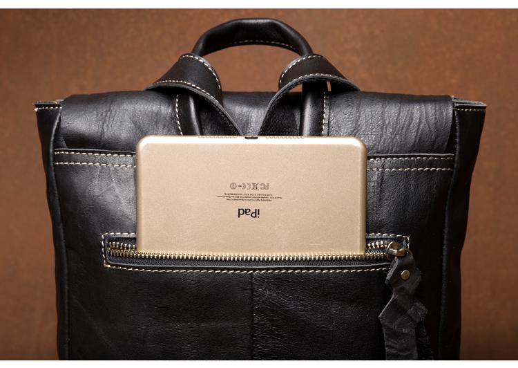 Design: Black Fashion Mens Leather 14-inch Computer Backpacks Cool Travel Backpacks School Backpack for men
