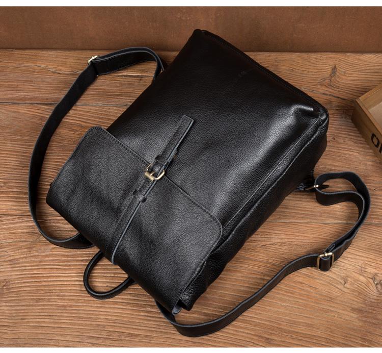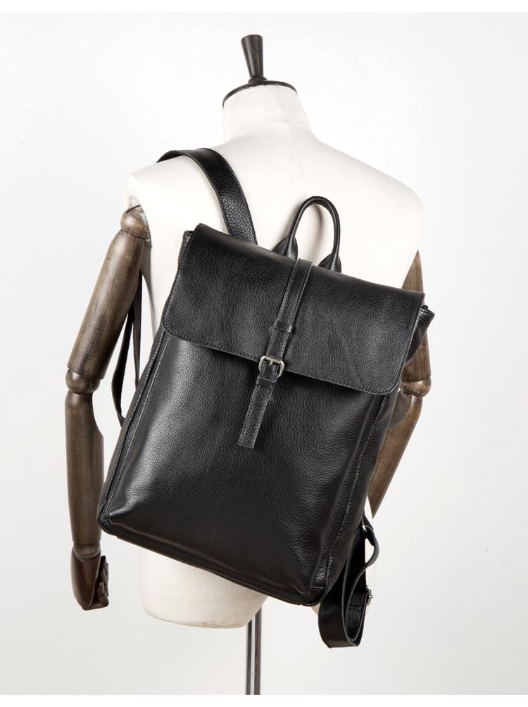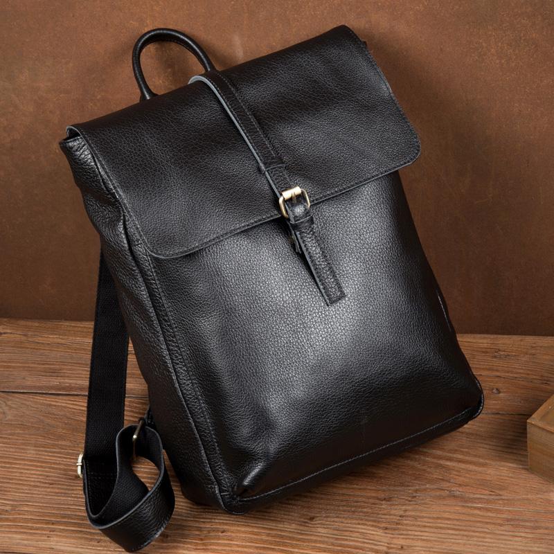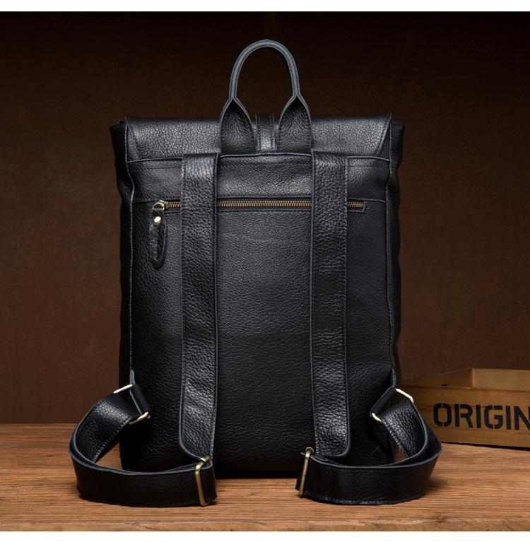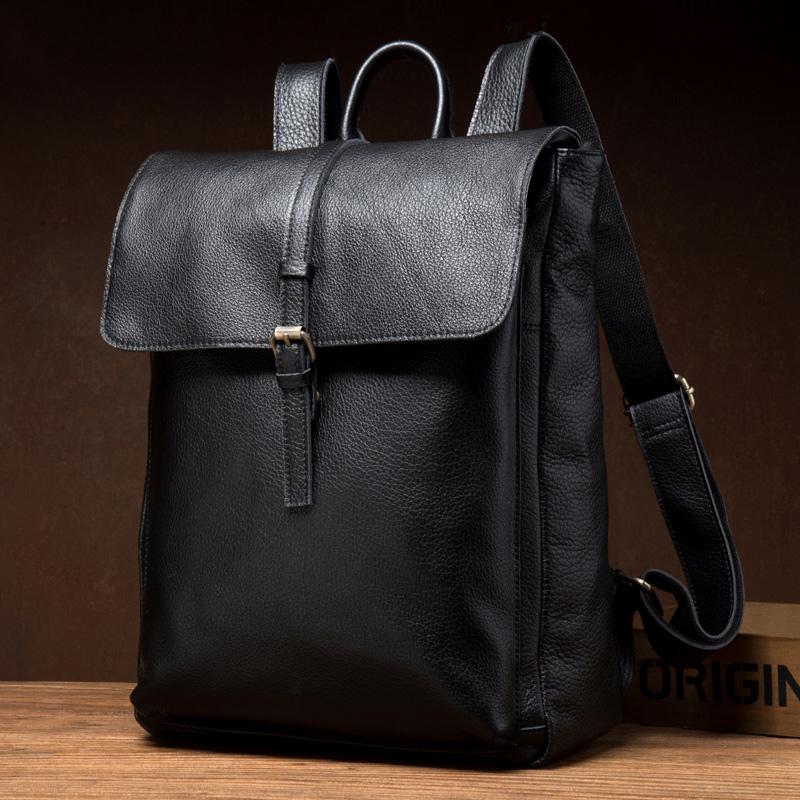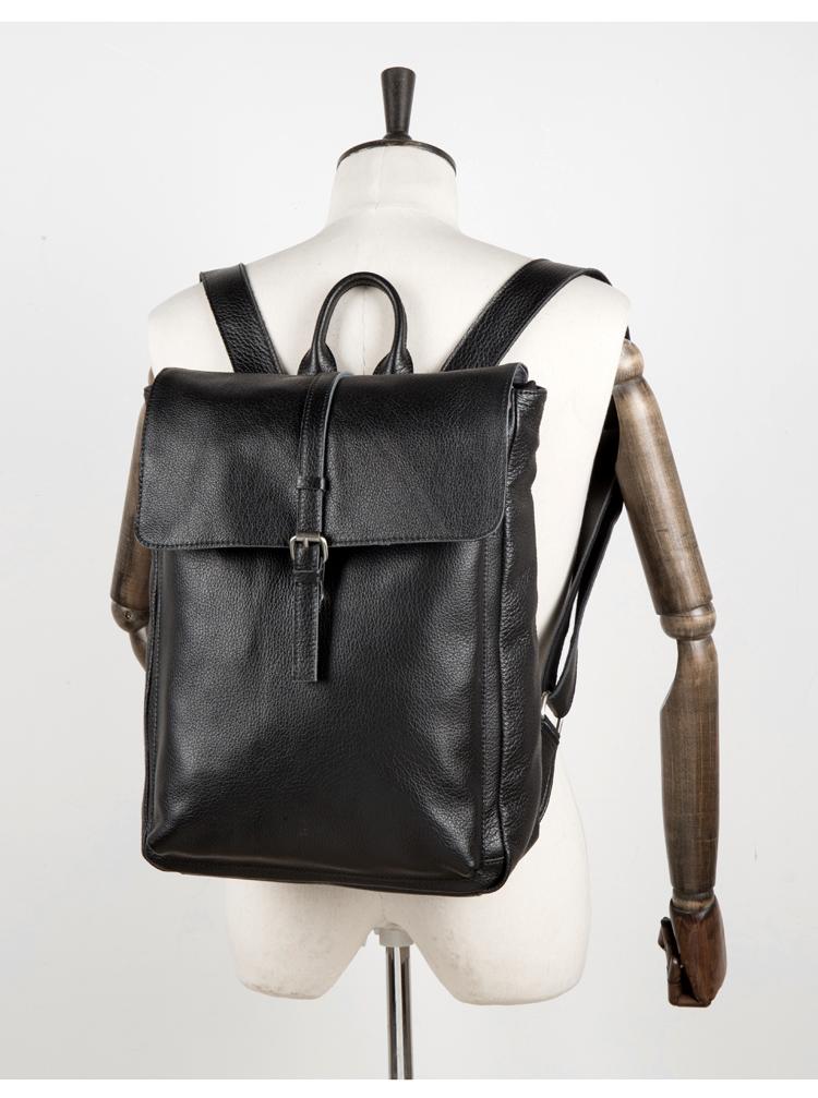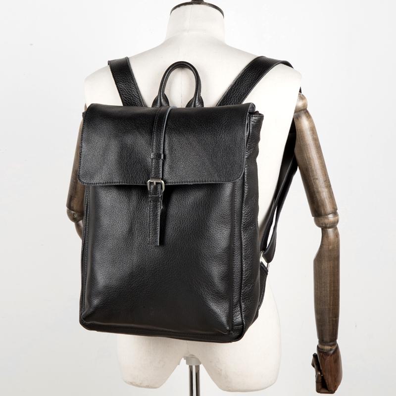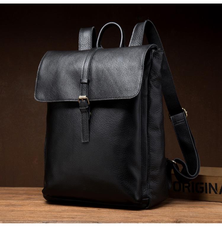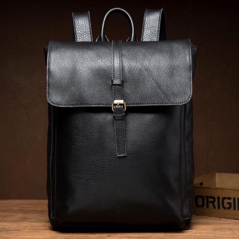 Design: Black Fashion Mens Leather 15-inch Computer Backpacks Cool Travel Backpacks School Backpacks for men