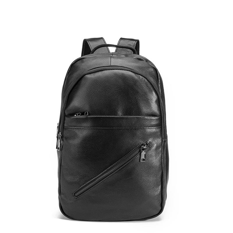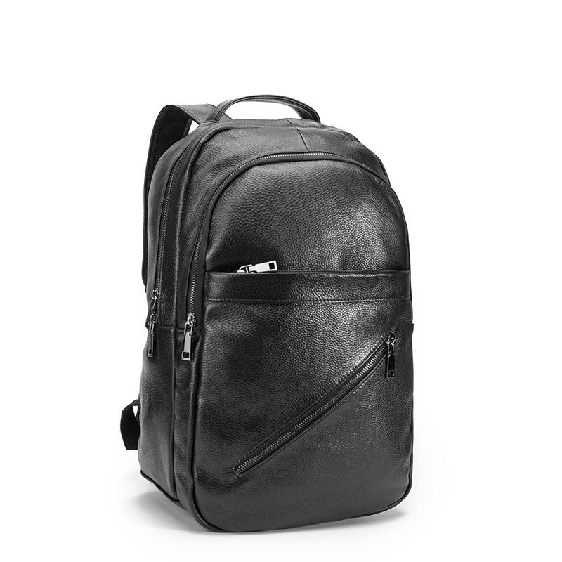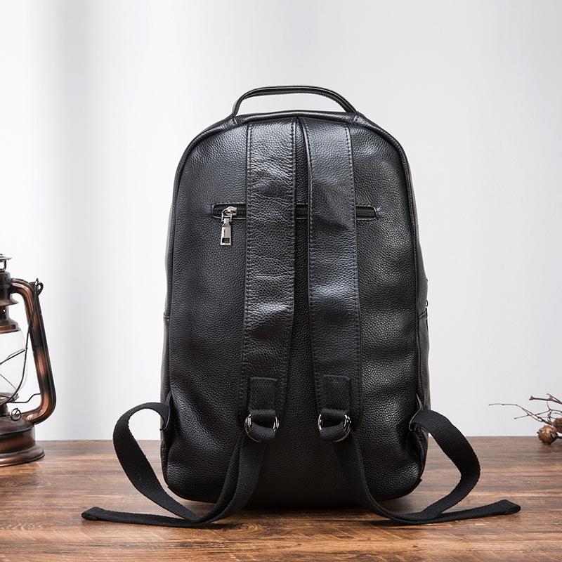 Black Mens Leather Laptop Backpack College Backpack Black Travel Backpack for Men