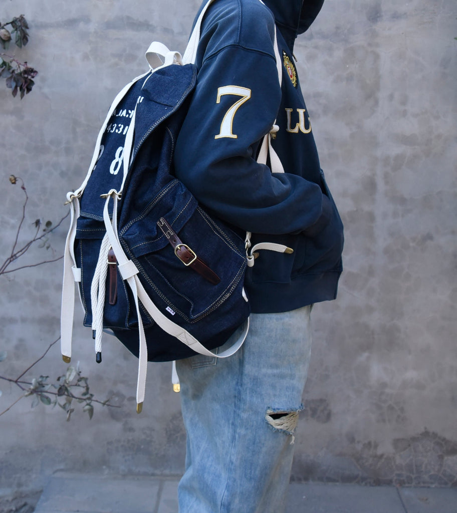 Blue Jean Backpack Mens Huge Backpack Large Blue&White Denim Backpack for Men