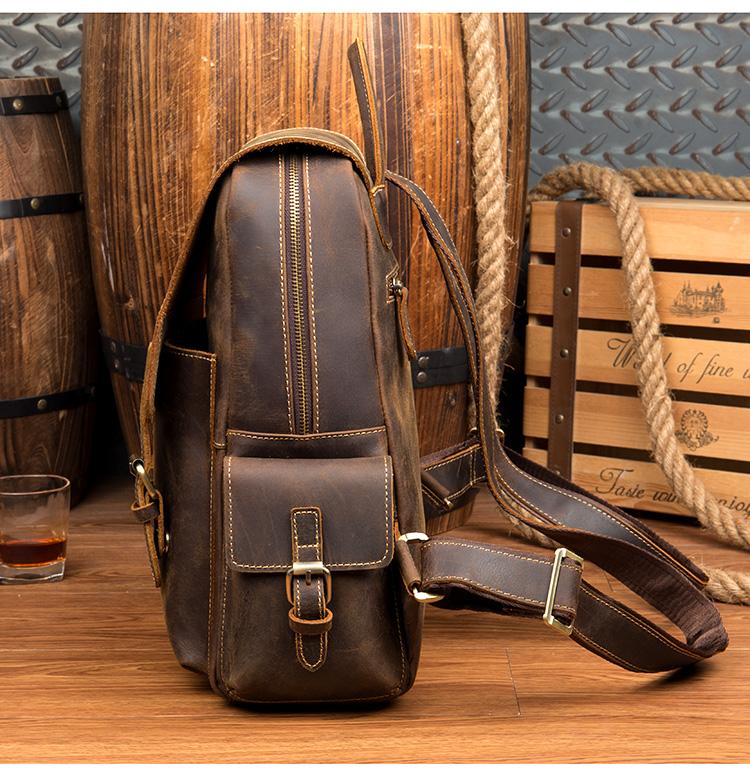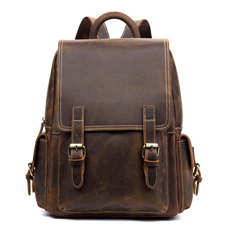 Style: Brown Casual Mens Leather 14-inch Computer Backpack Dark Brown Travel Backpacks School Backpacks for men