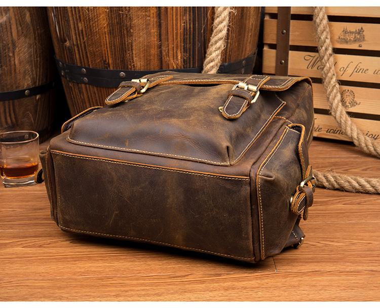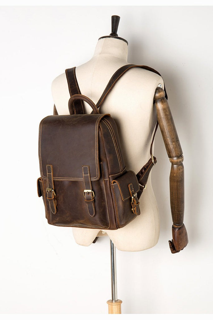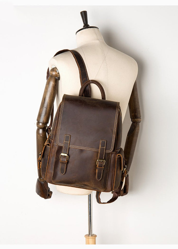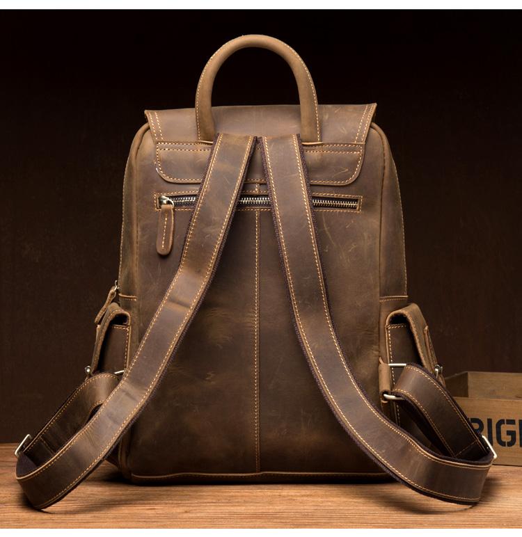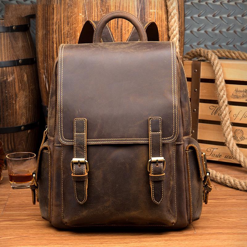 Design: Brown Casual Mens Leather 14-inch Computer Backpack Dark Brown Travel Backpacks School Backpacks for men