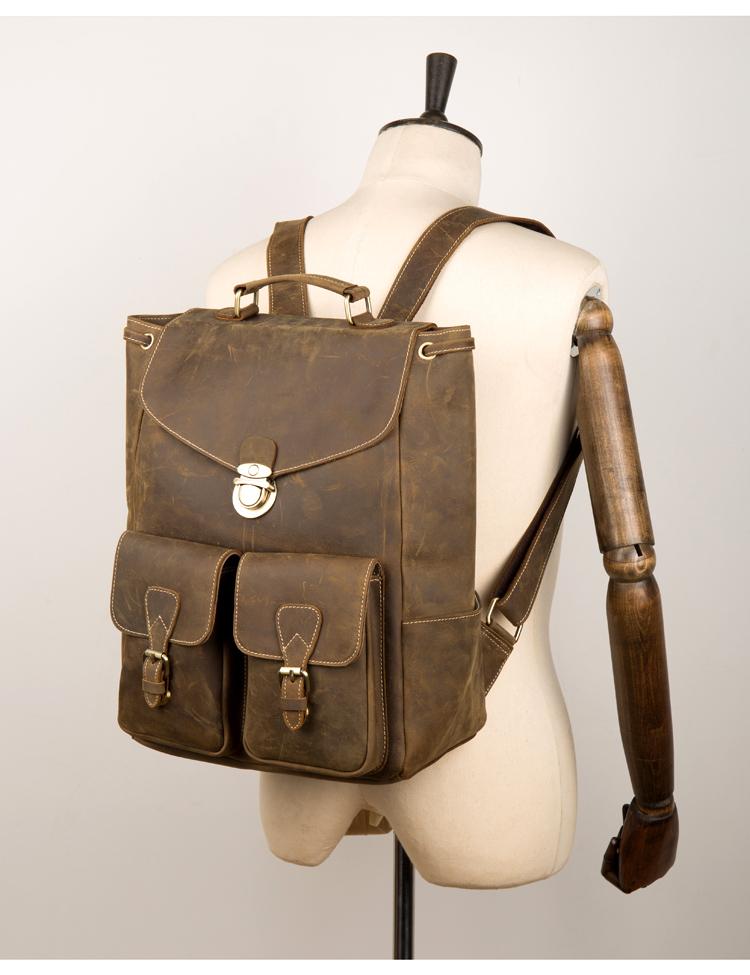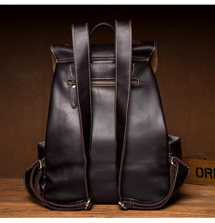 Design: Brown Casual Mens Leather 15-inch Large Backpack Black Travel Backpacks School Backpacks for men