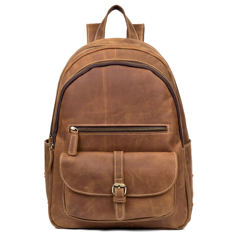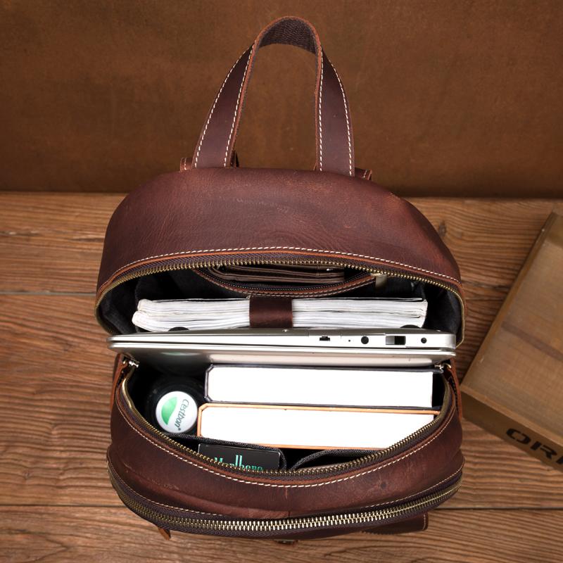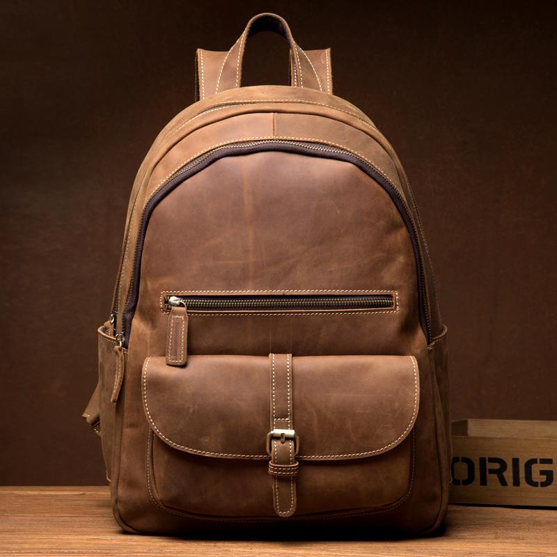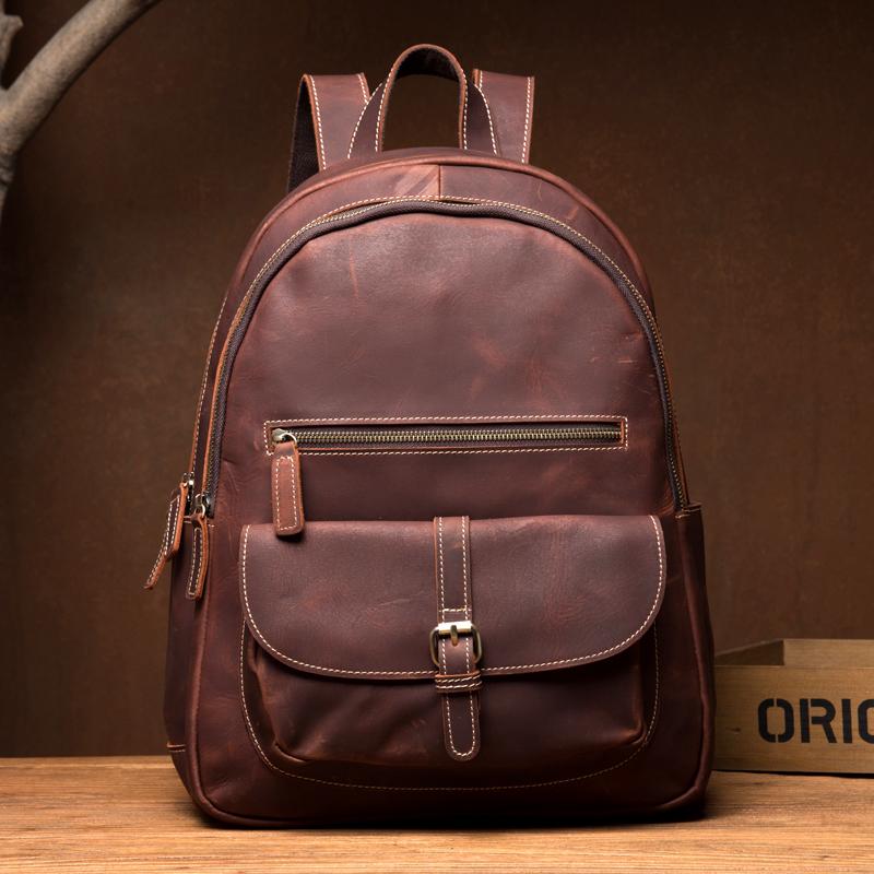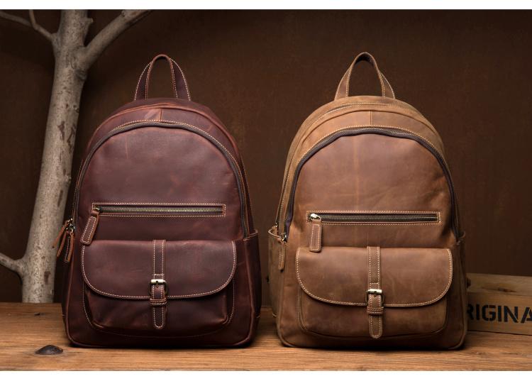 Style: Brown Fashion Mens Leather 14-inch Large Backpacks Dark Brown Travel Backpacks School Backpacks for men