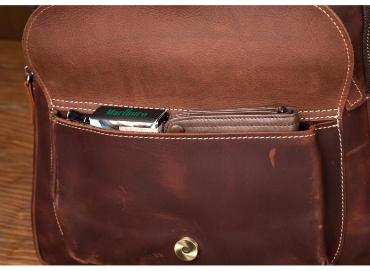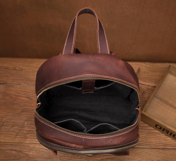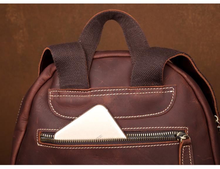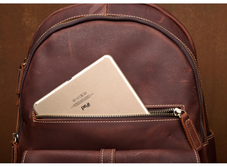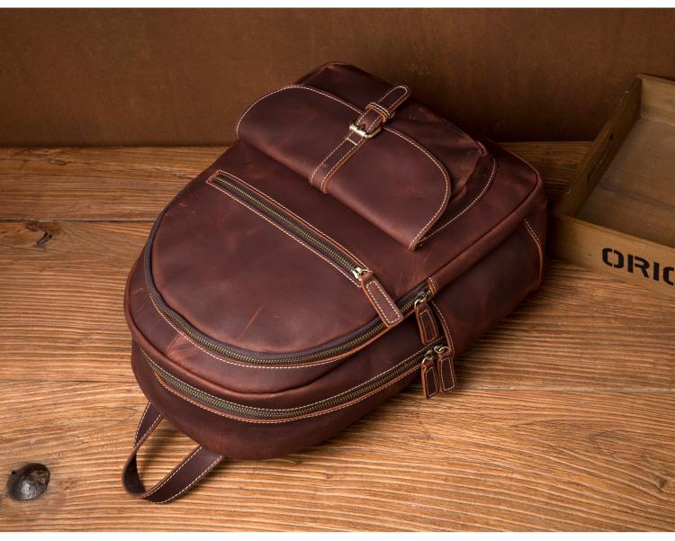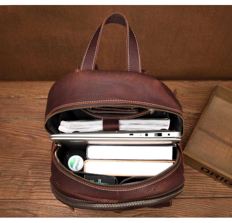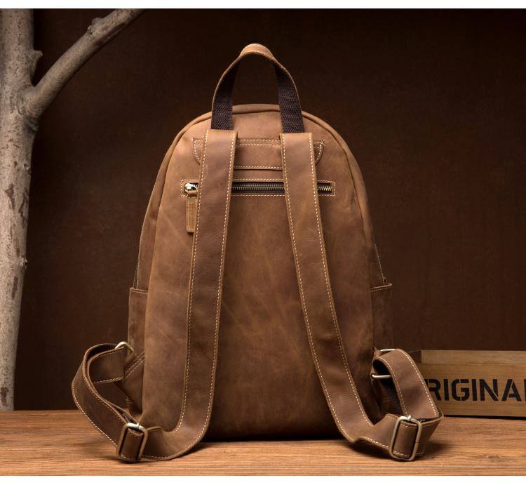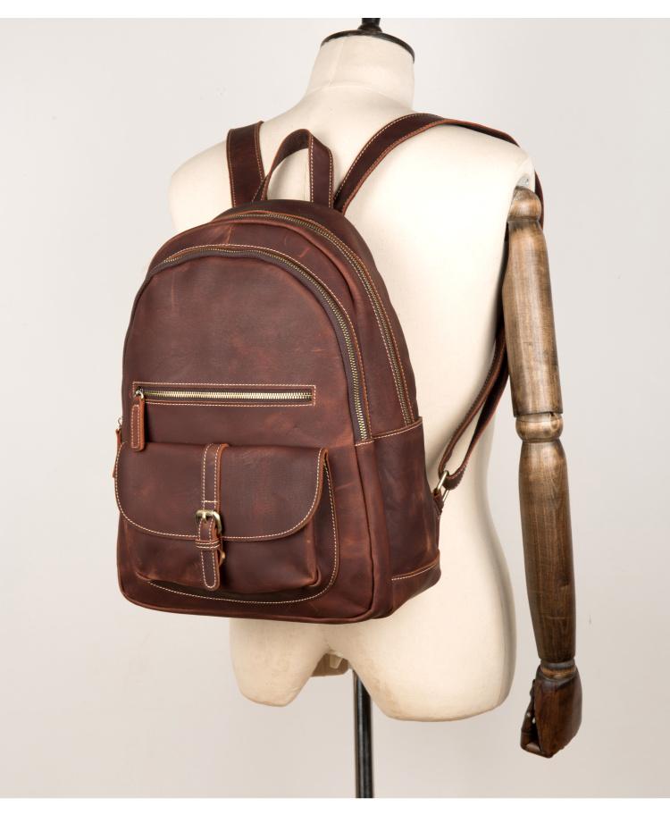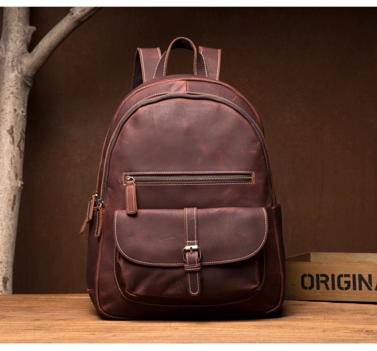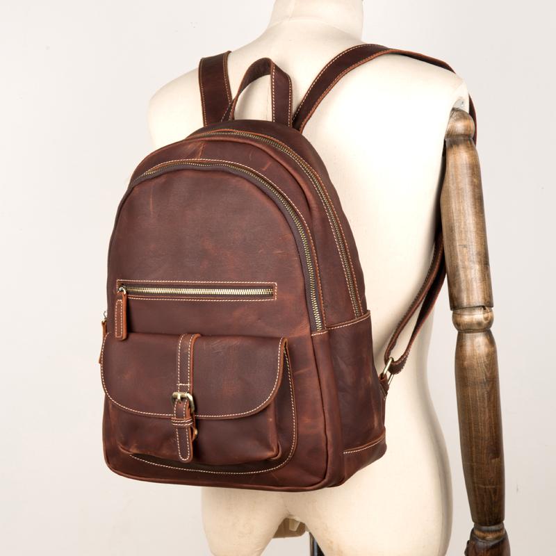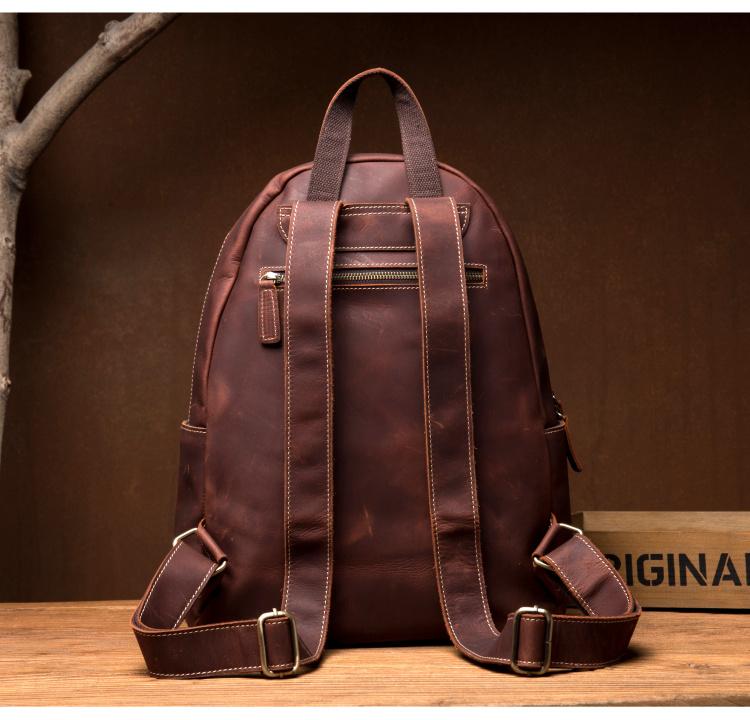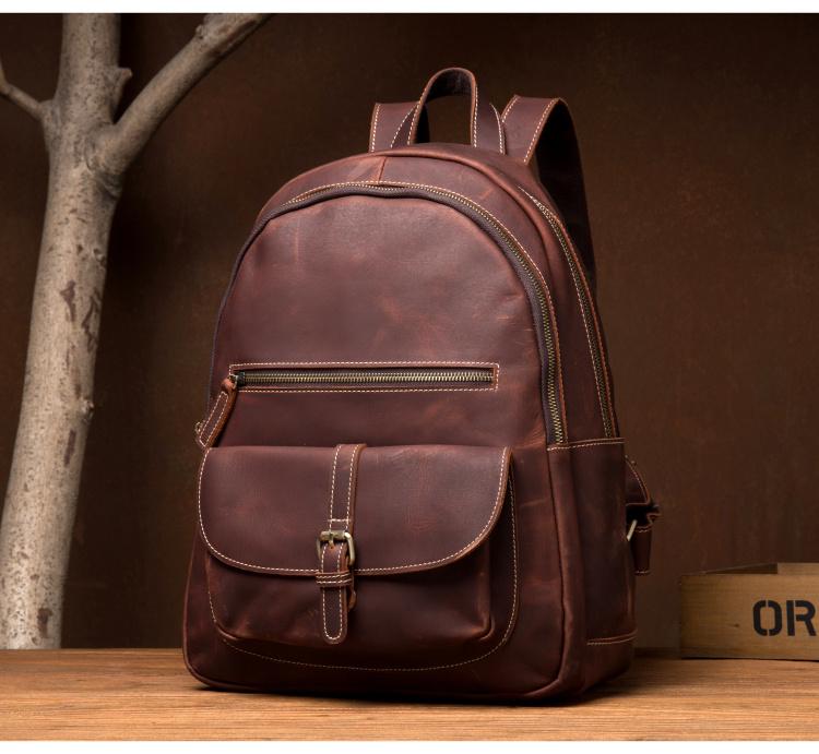 Design: Brown Fashion Mens Leather 14-inch Large Backpacks Dark Brown Travel Backpacks School Backpacks for men