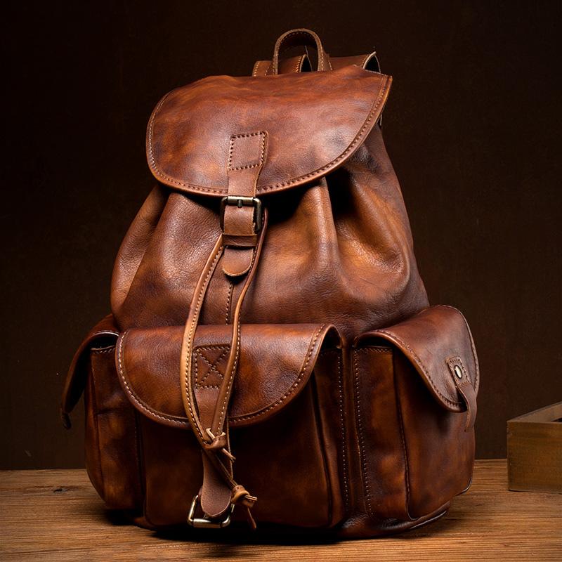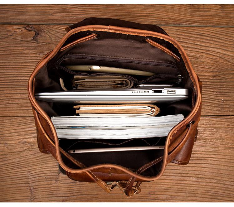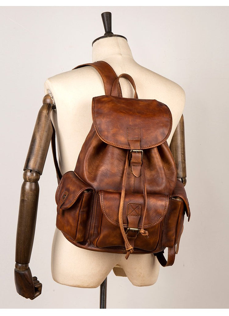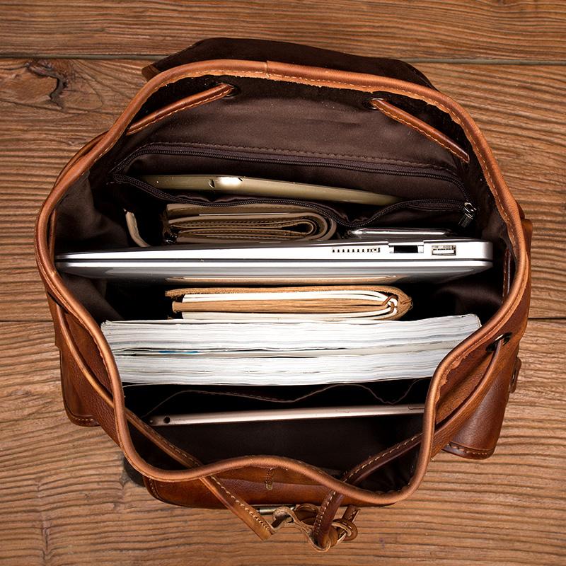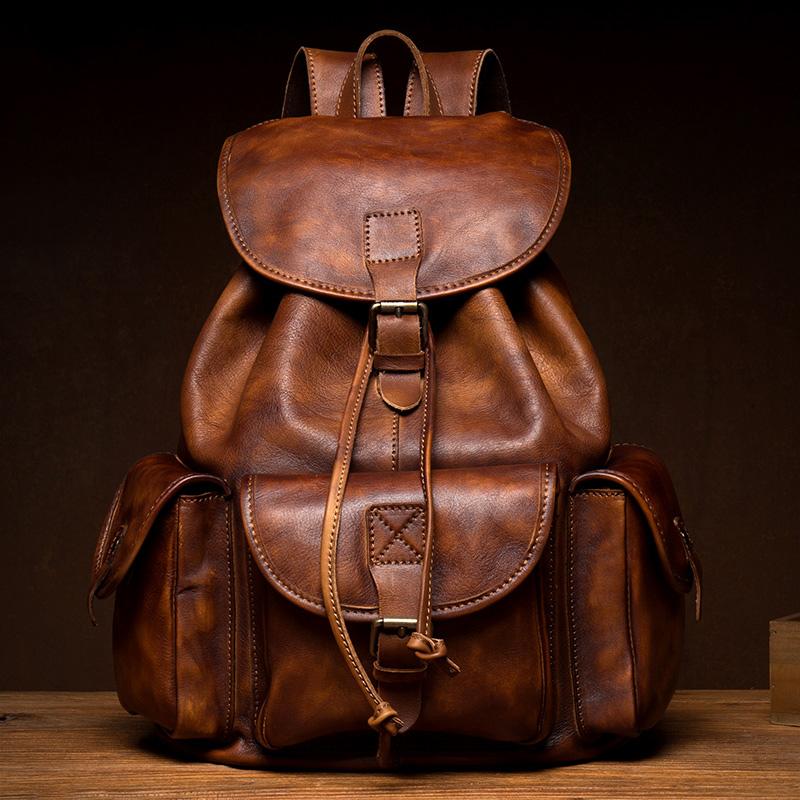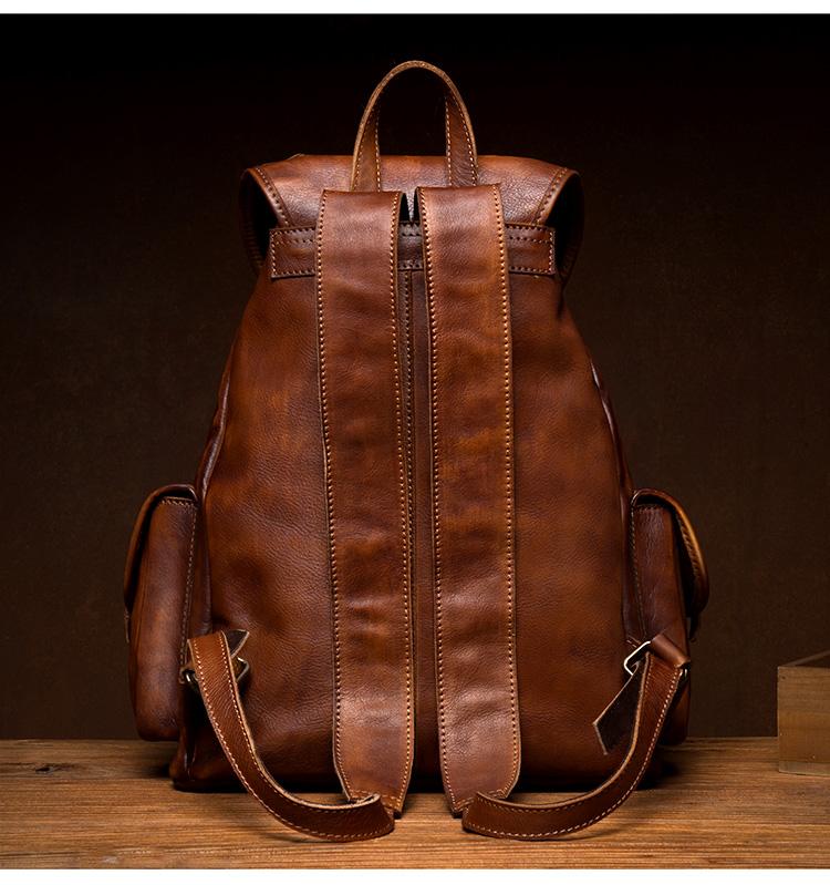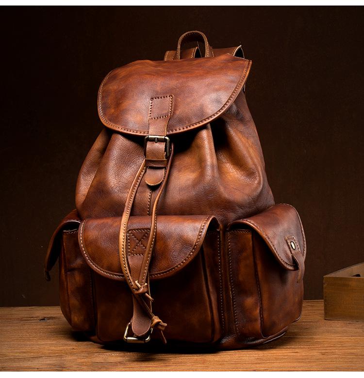Design: Brown Fashion Mens Leather 15-inch Computer Backpacks Cool Travel Backpacks School Backpack for men