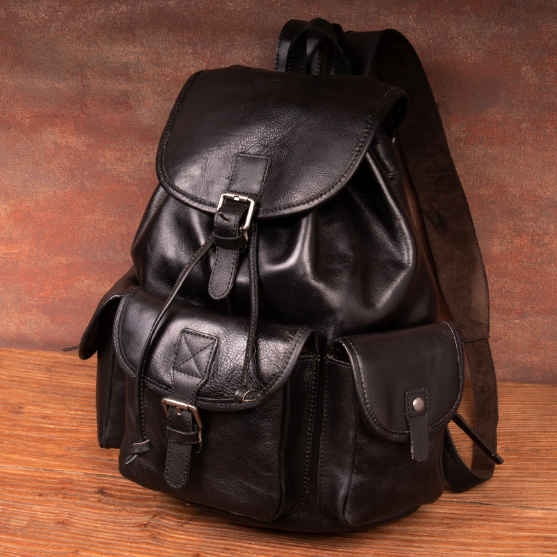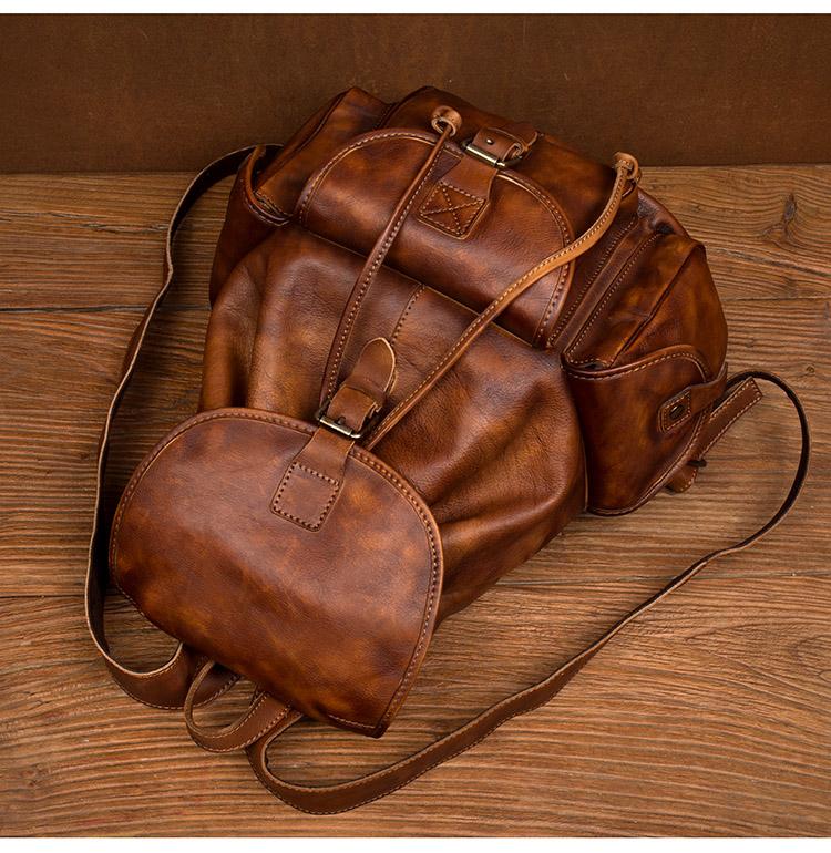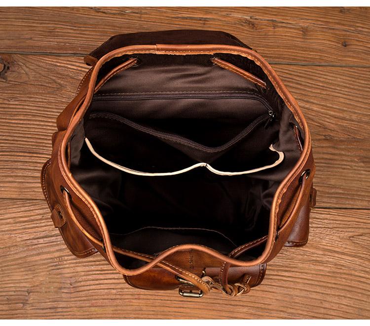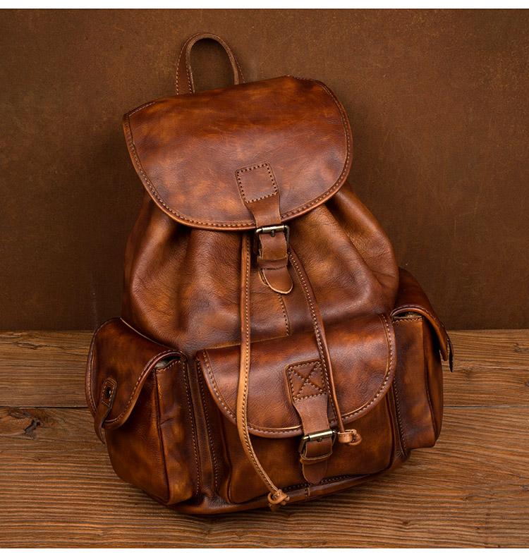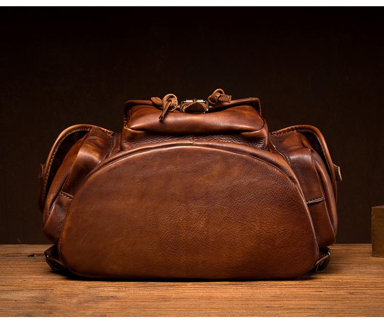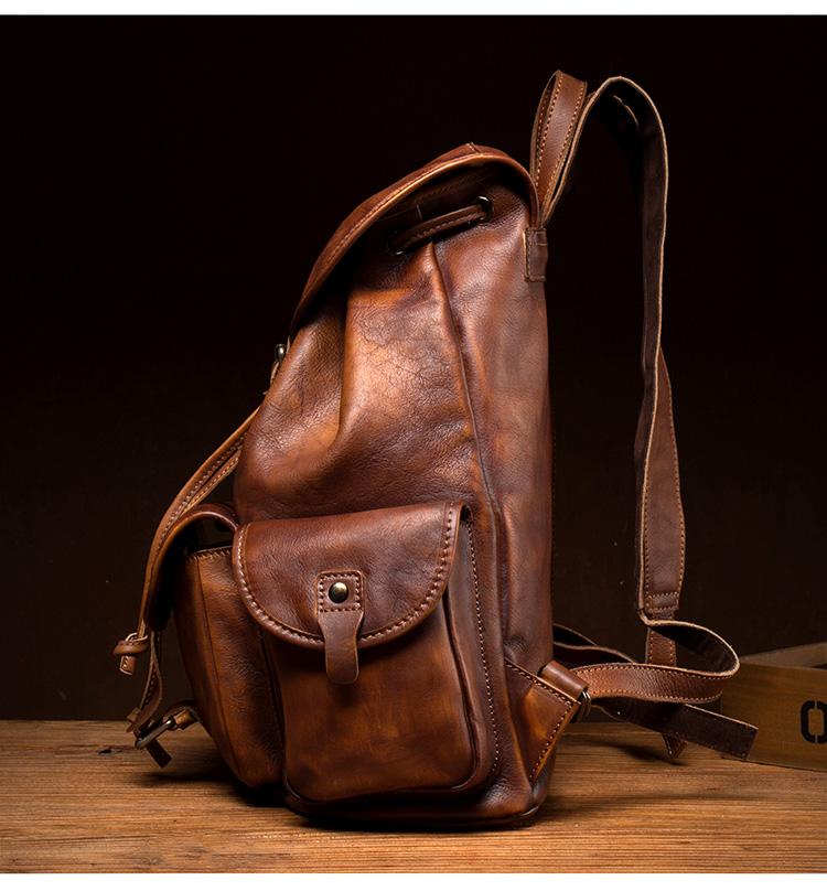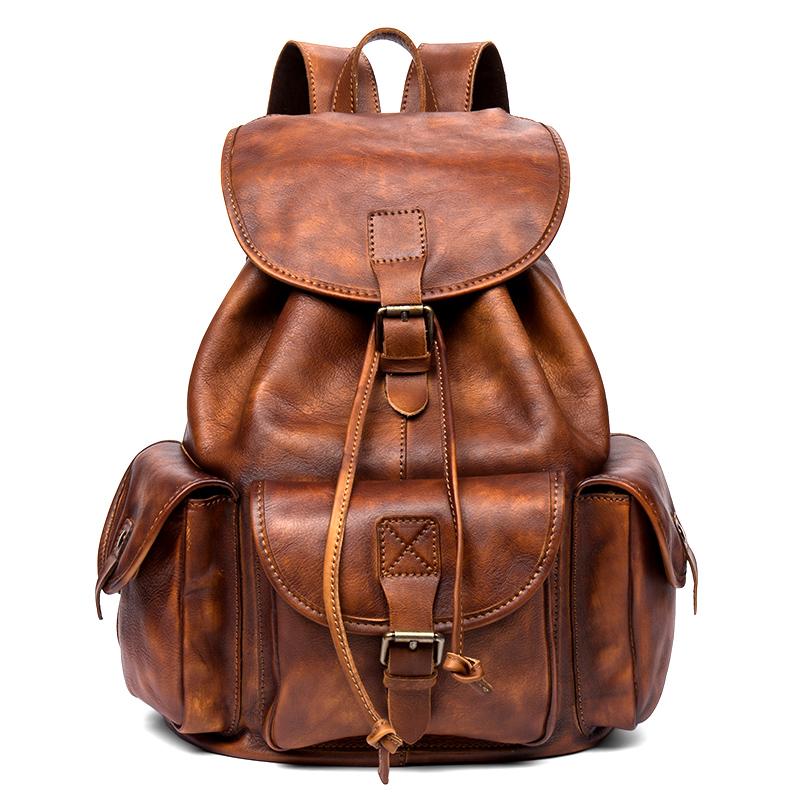 Design: Brown Fashion Mens Leather 15-inch Computer Backpacks Cool Travel Backpacks School Backpack for men