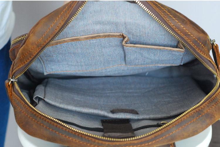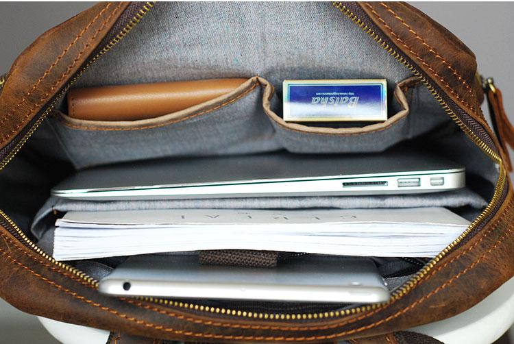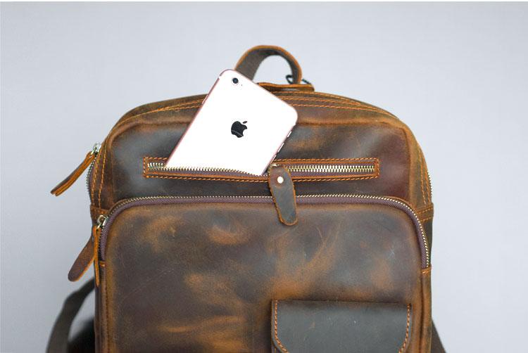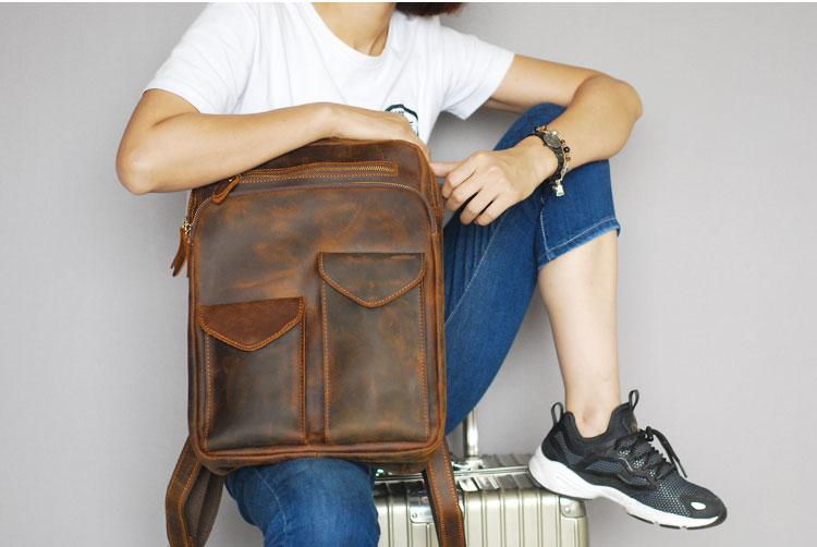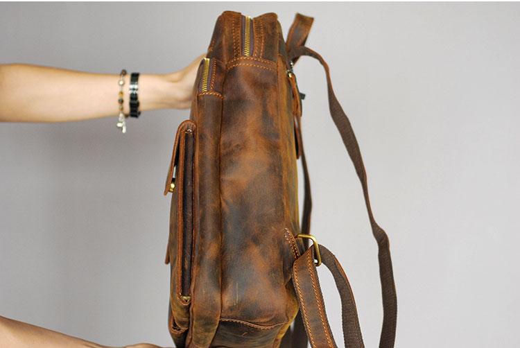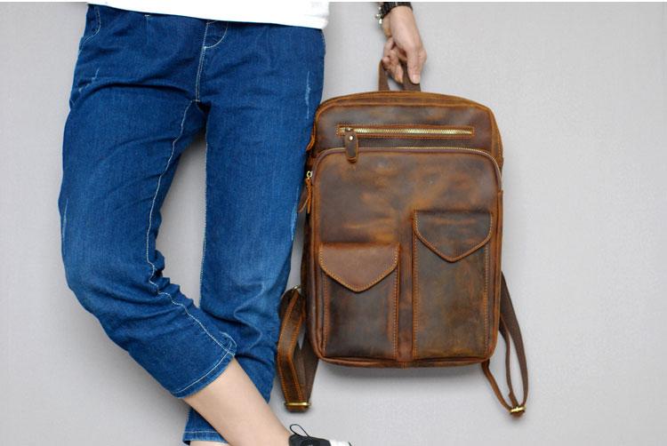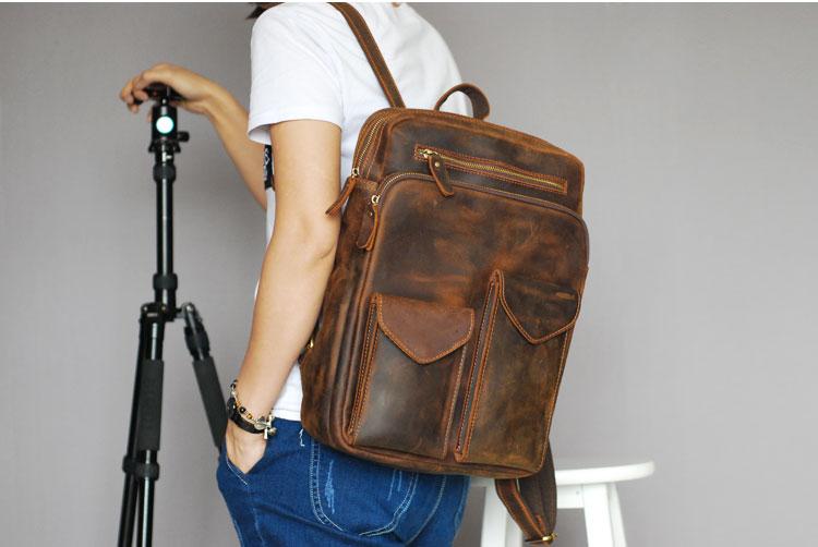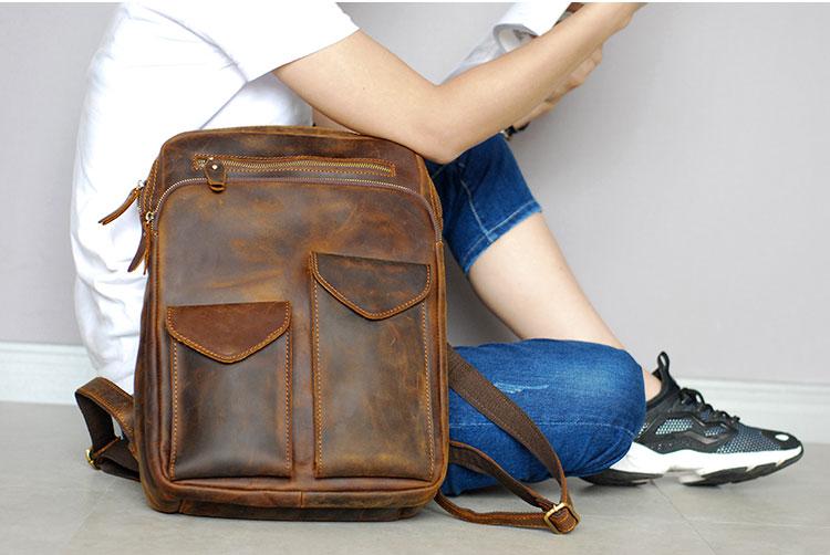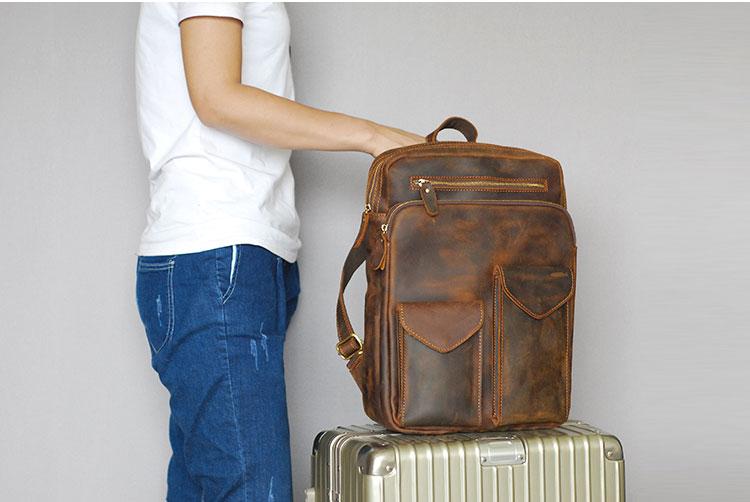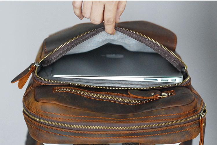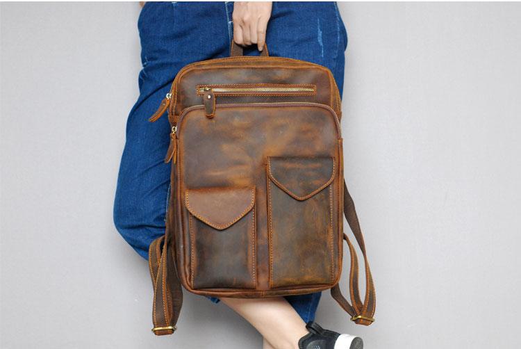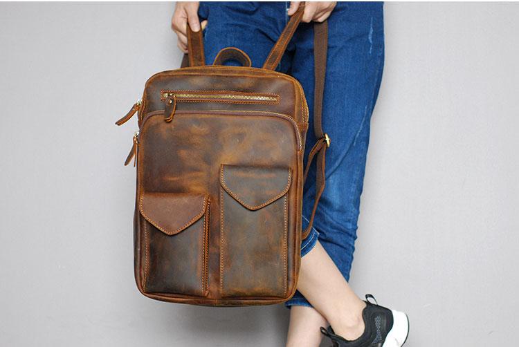 Design: Brown Leather Mens 14" Laptop Durable Backpack Hiking Backpack Travel Backpack College Bag for Men