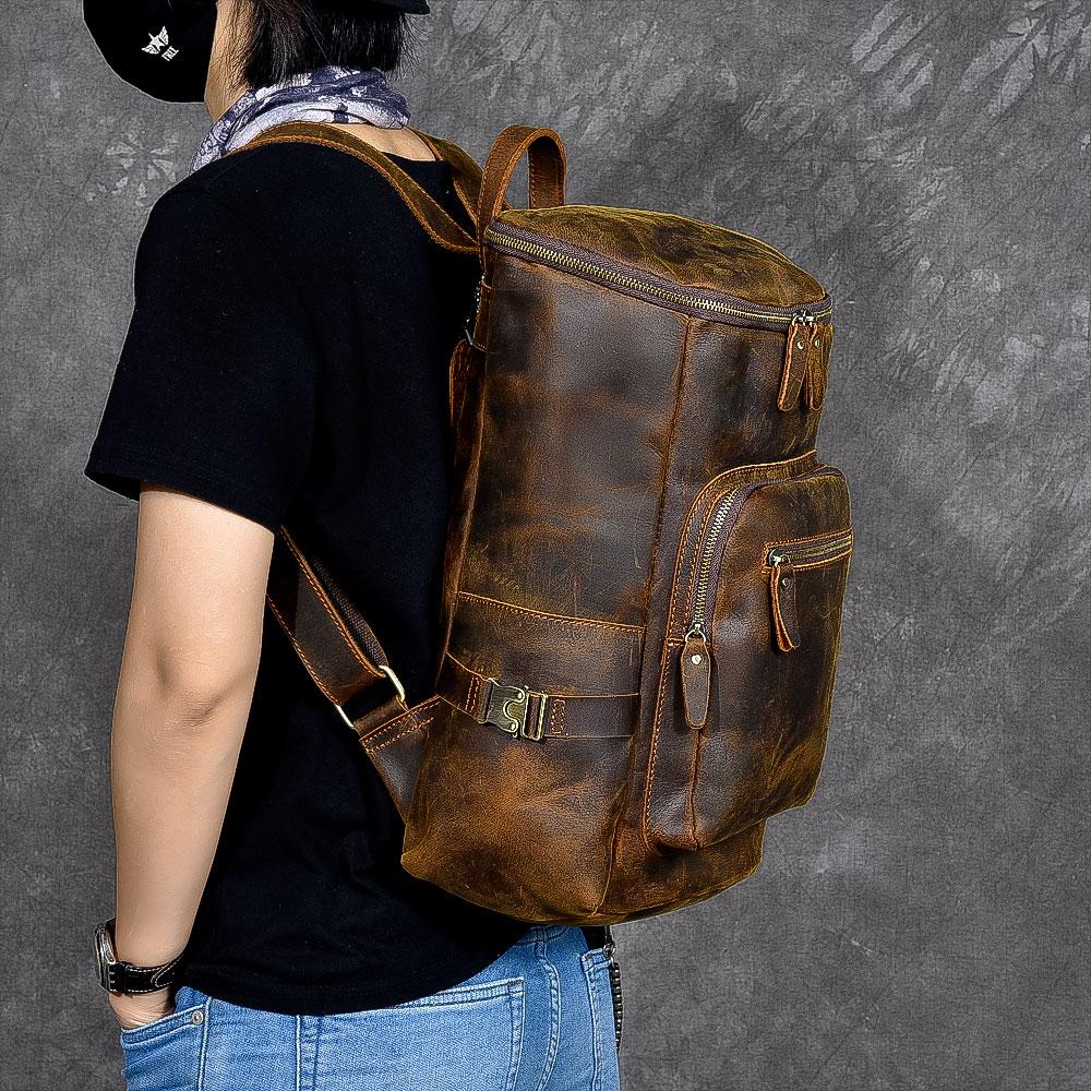 Style: Brown Leather Mens 14" Laptop Large Backpack Hiking Backpack Travel Backpack College Bag for Men