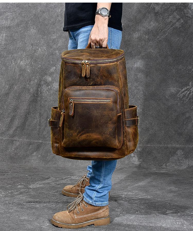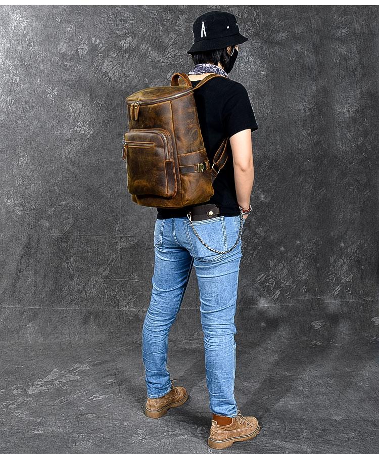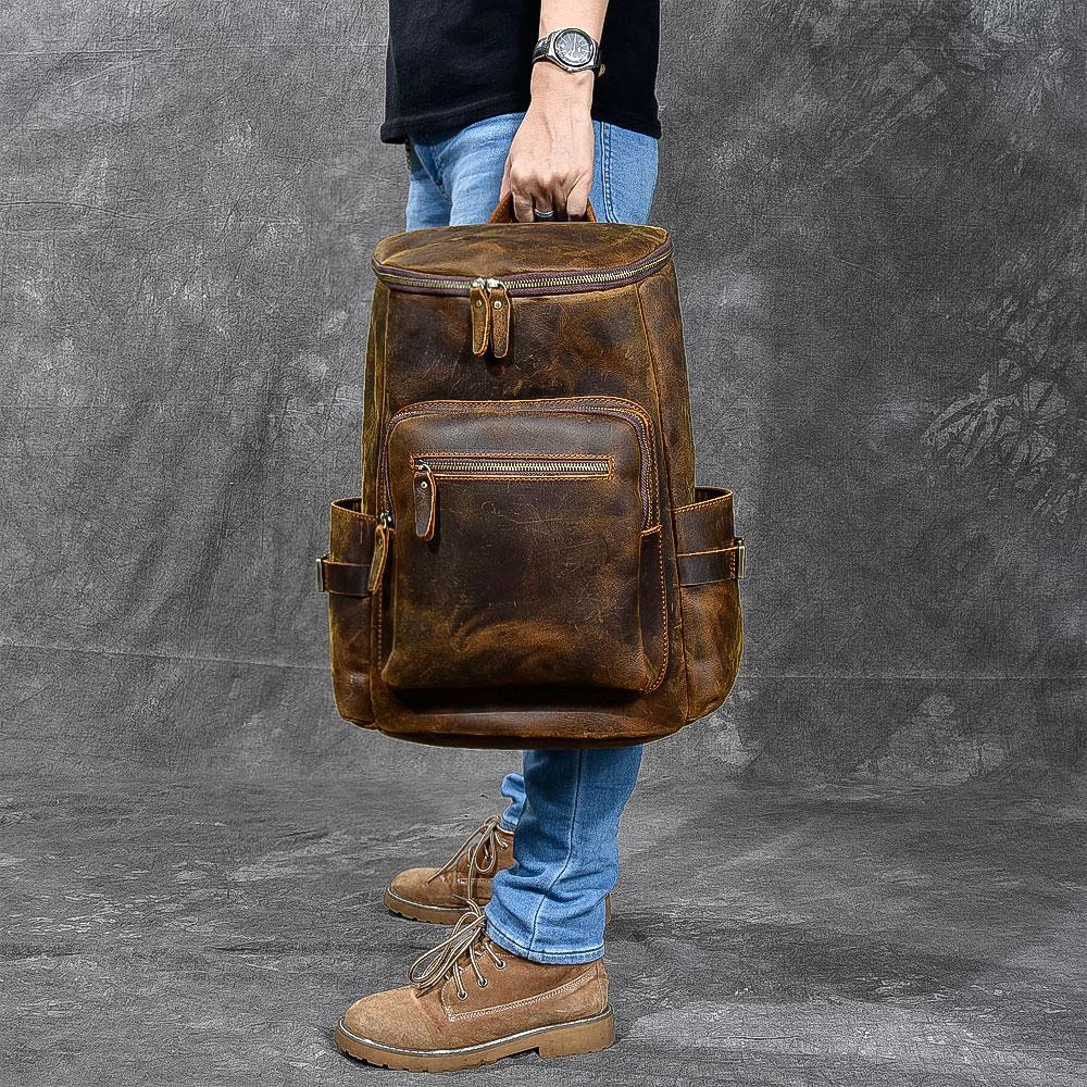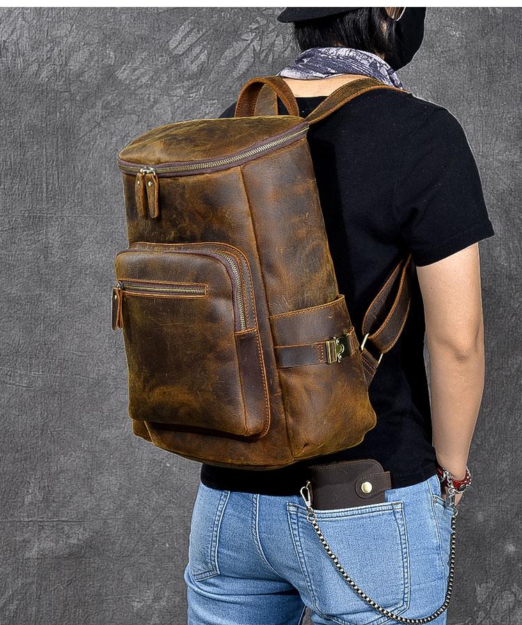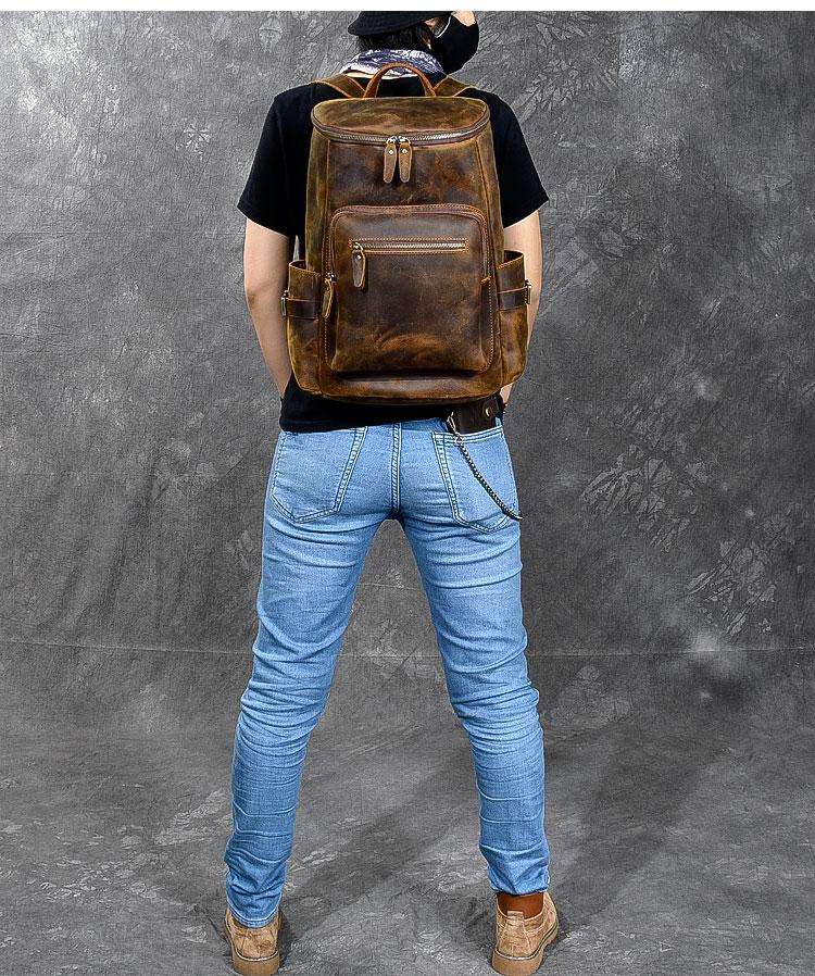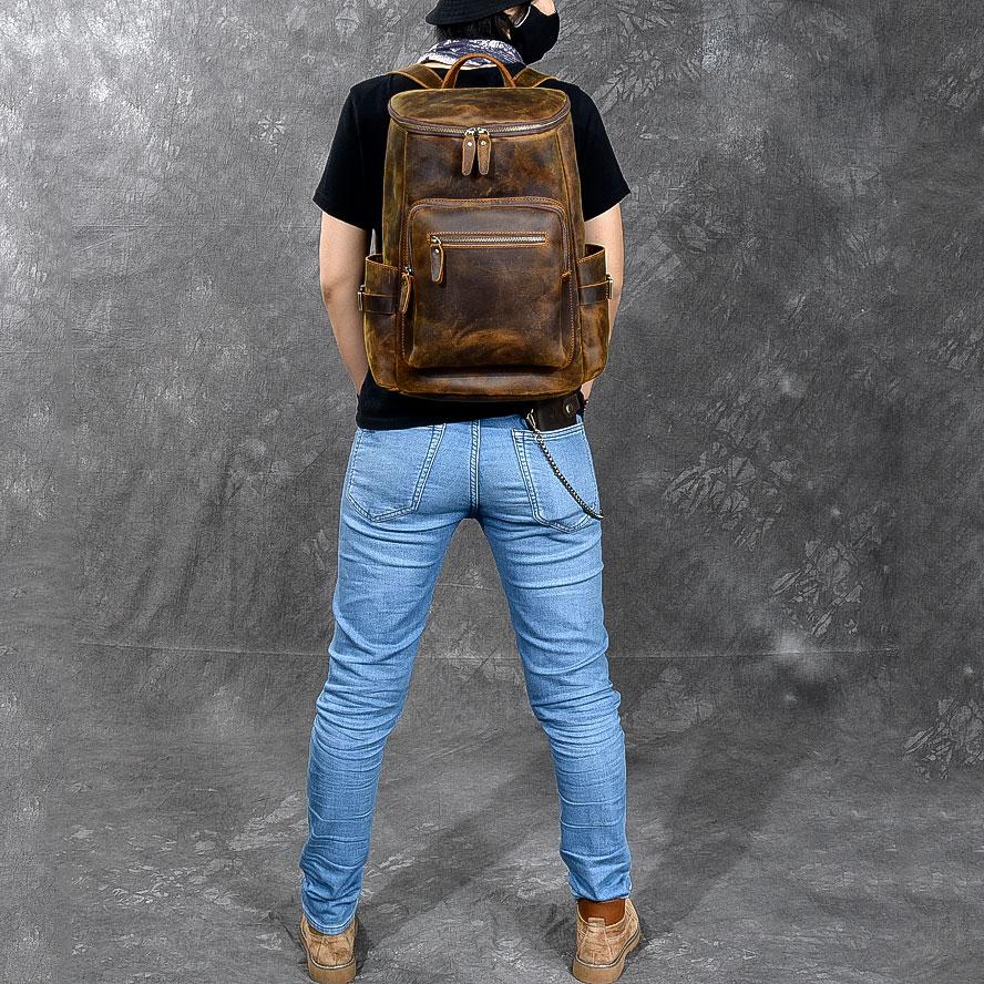 Design: Brown Leather Mens 14" Laptop Large Backpack Hiking Backpack Travel Backpack College Bag for Men