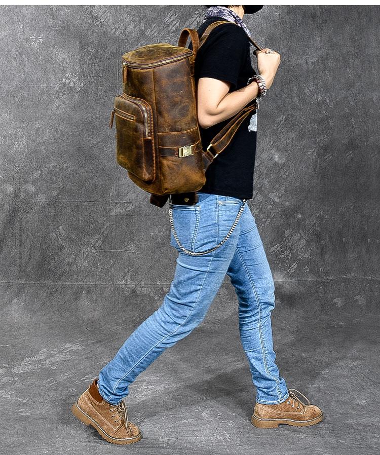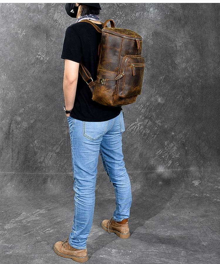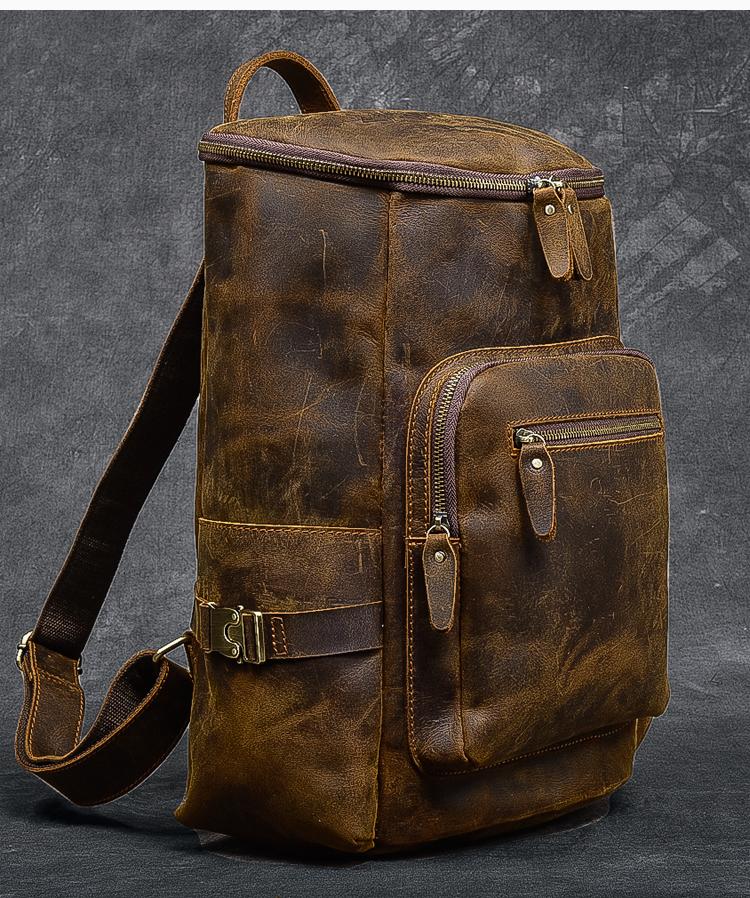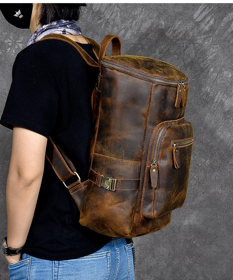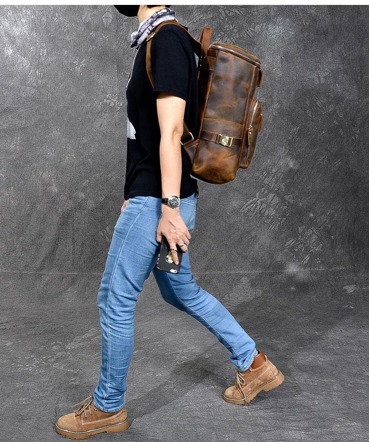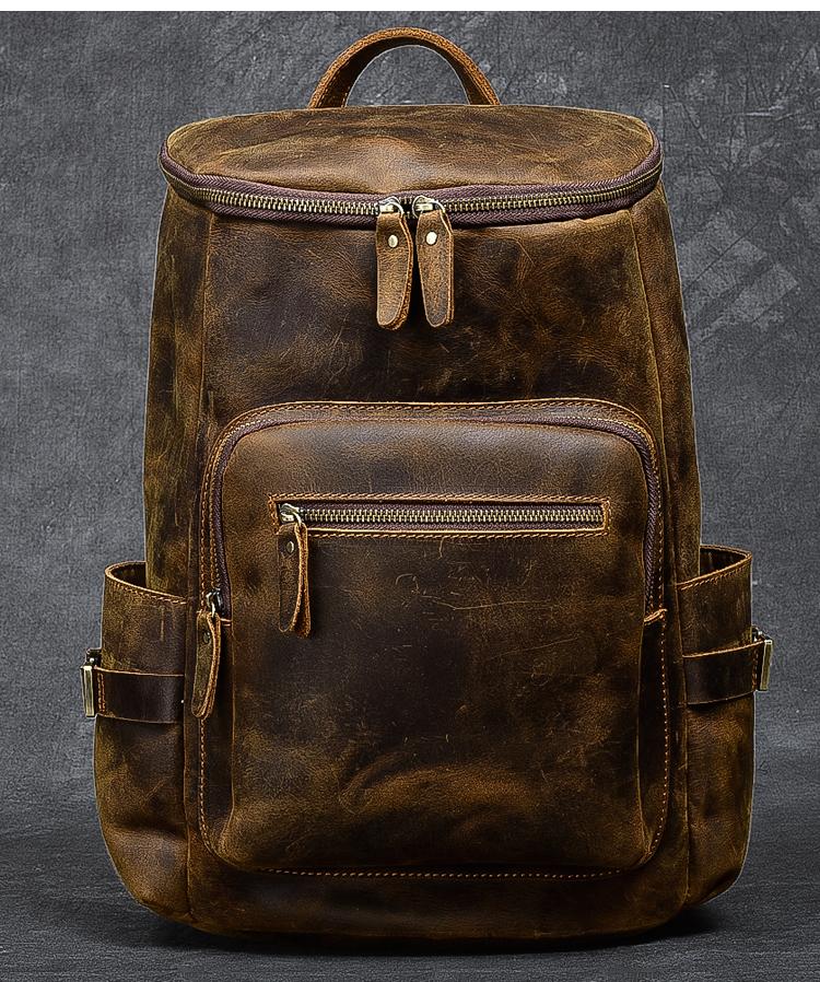 Design: Brown Leather Mens 14" Laptop Large Backpack Hiking Backpack Travel Backpack College Bag for Men