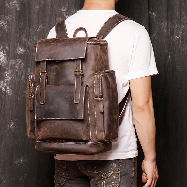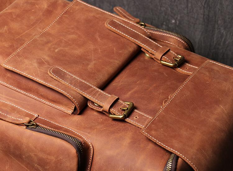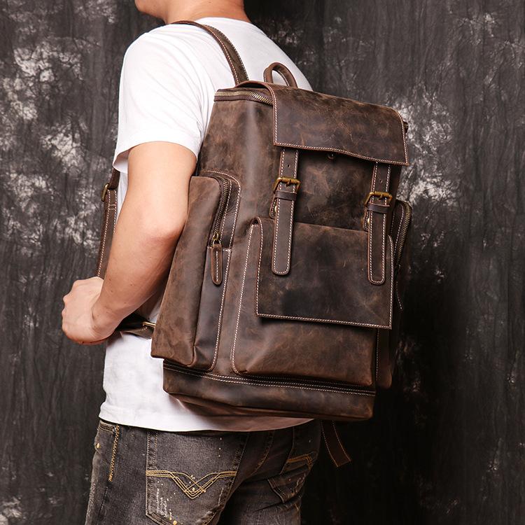 Design: Brown Mens Leather 15 inches Large School Laptop Backpack Brown Travel Backpacks for MenOverview: