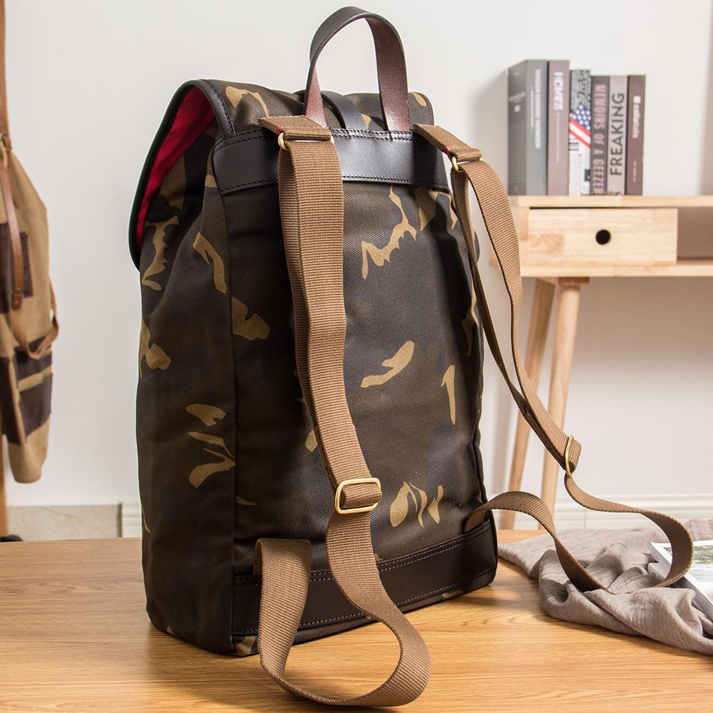 Style: Camouflage Canvas Leather Mens Large 16'' Laptop Backpack College Backpack Hiking Backpack for Men