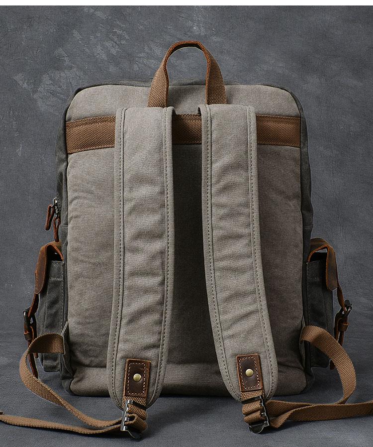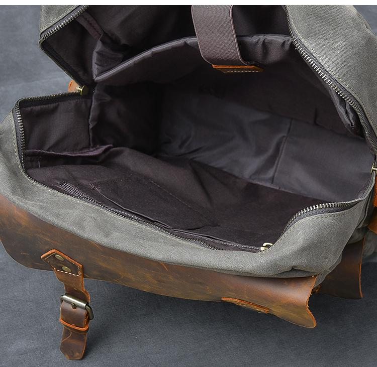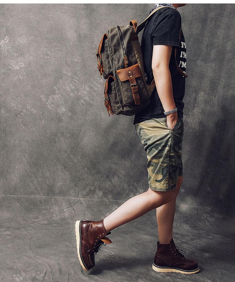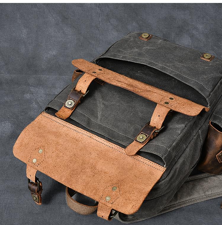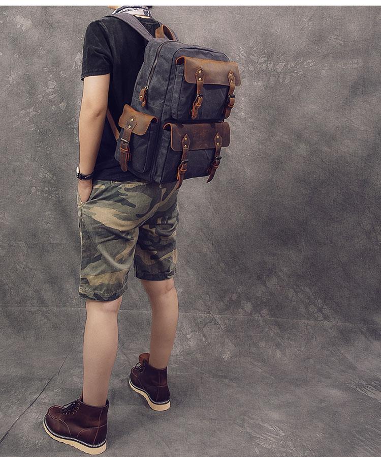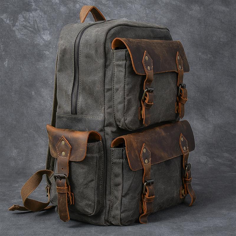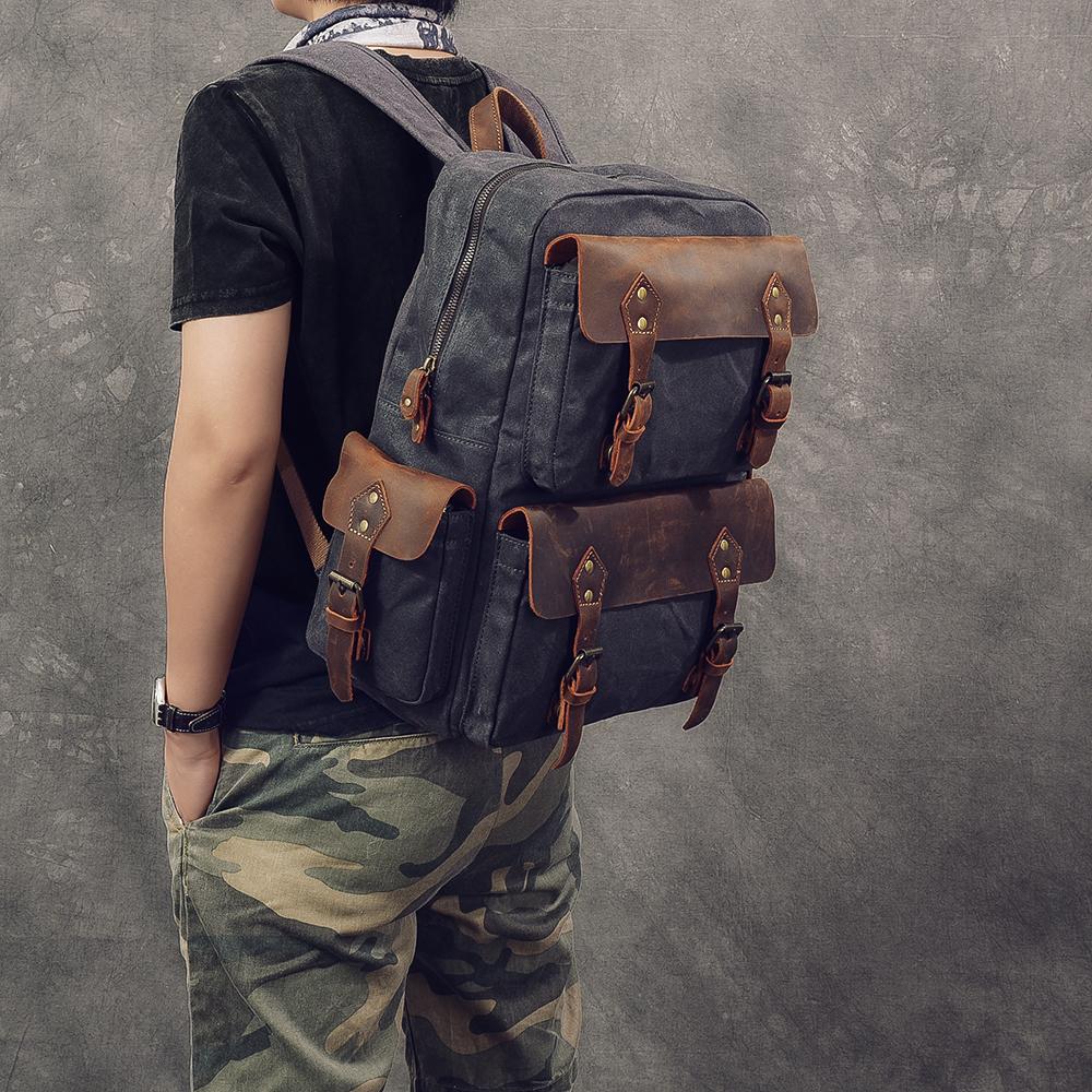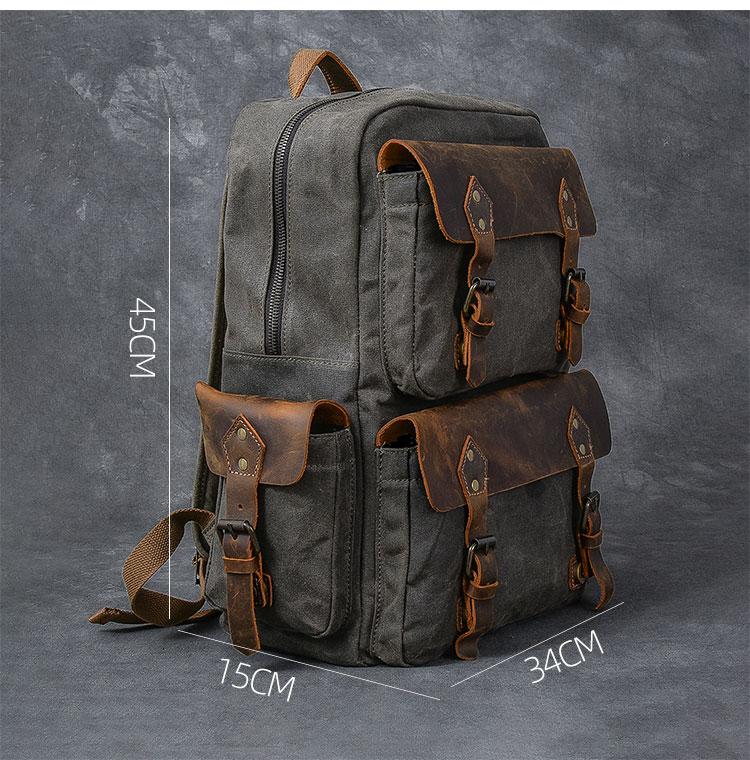 Design: Waxed Canvas Leather Mens 15" Laptop Backpack Army Green Travel Backpack Dark Gray College Backpack for Men
