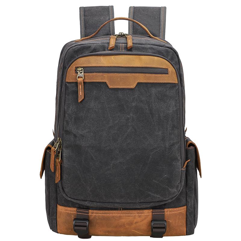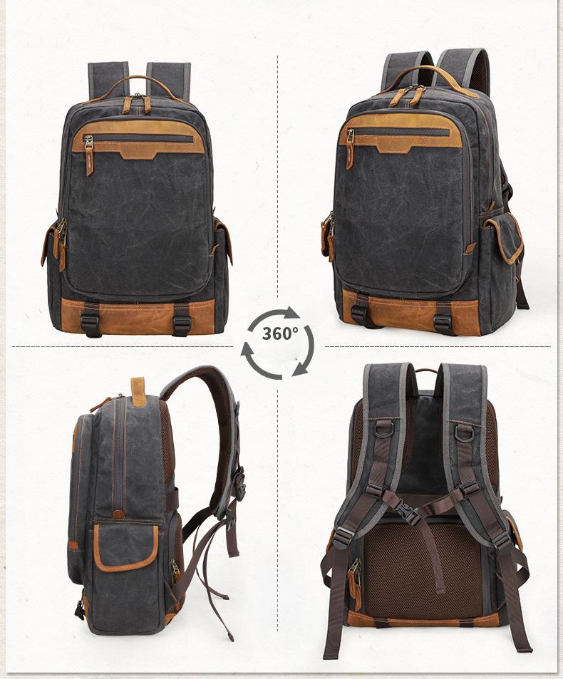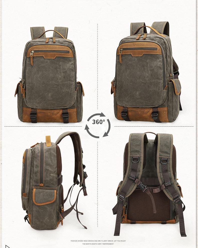 Style: Canvas Leather Mens 15" Camera Backpack Army Green Travel Backpack Khaki College Backpack for Men