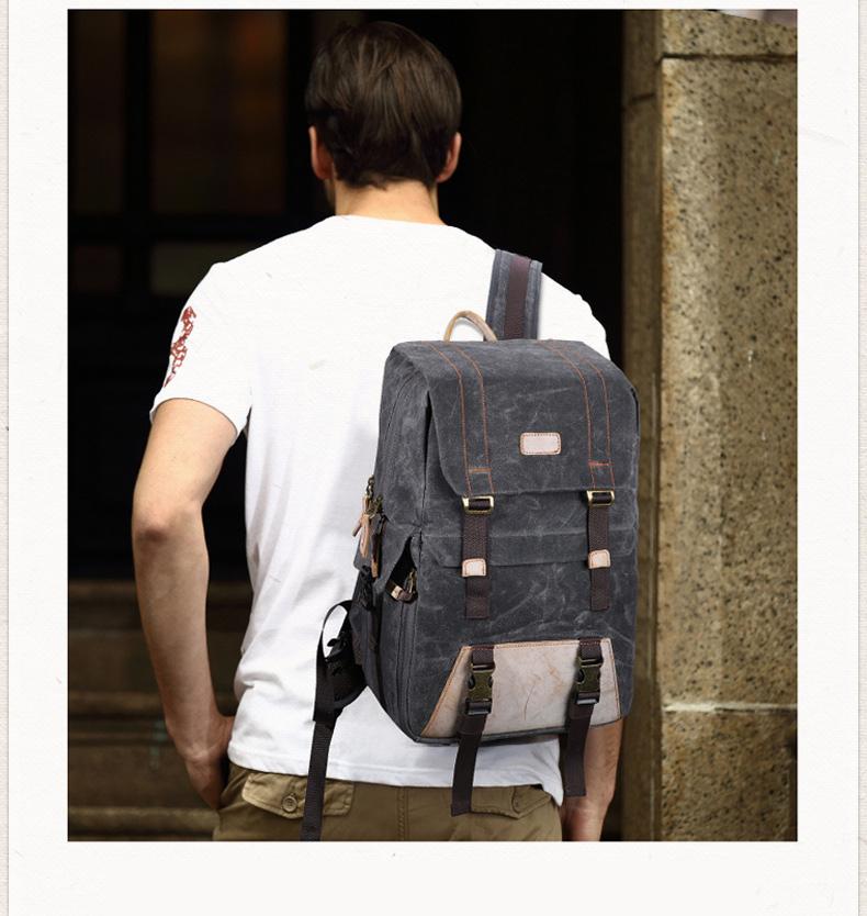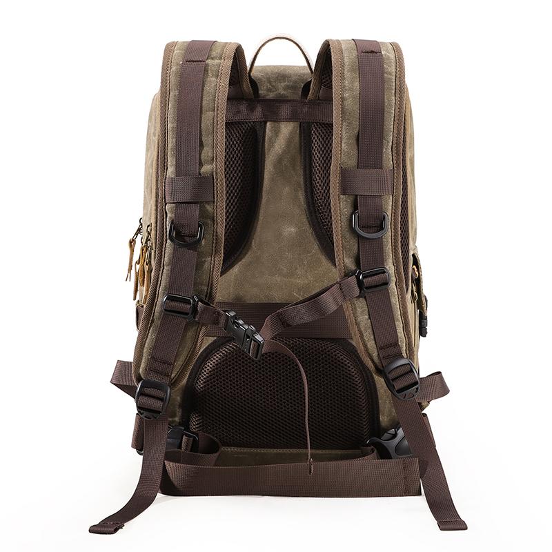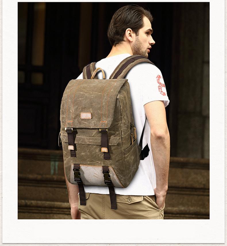 Design: Canvas Leather Mens Camera Backpack Khaki Waterproof Travel Backpack Army Green College Backpack for Men