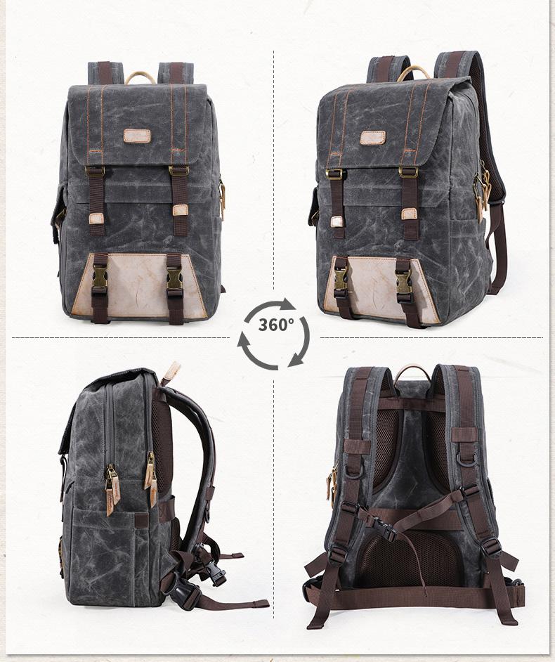Style: Canvas Leather Mens Camera Backpack Khaki Waterproof Travel Backpack Army Green College Backpack for Men