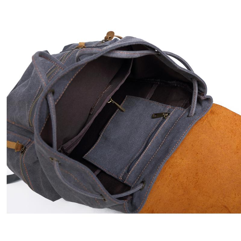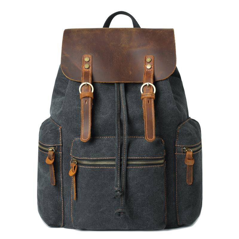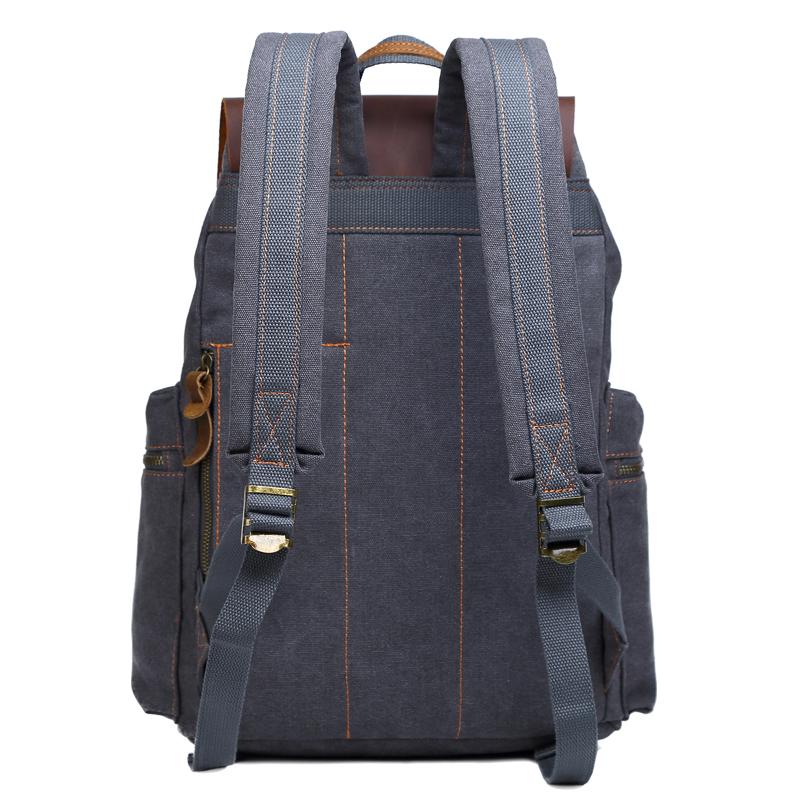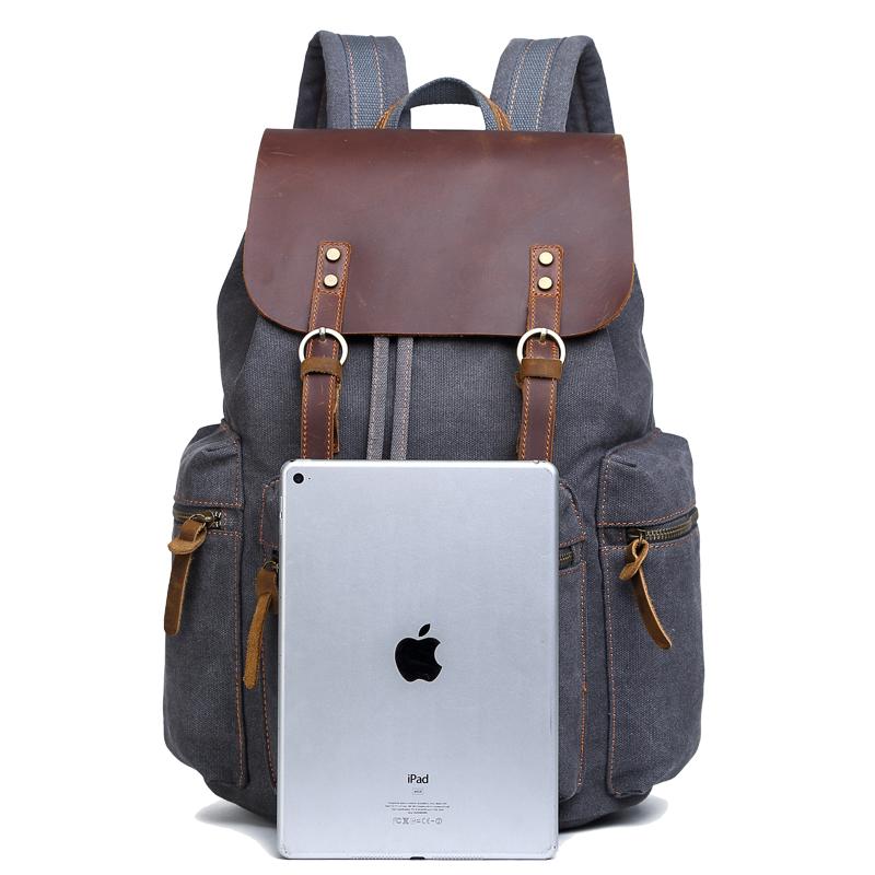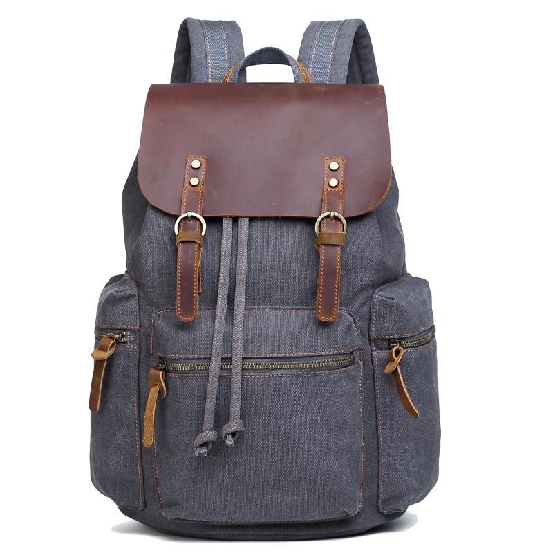 Style: Canvas Leather Women Mens 16" Gray Travel Backpack Brown Computer Bag College Backpack for Men