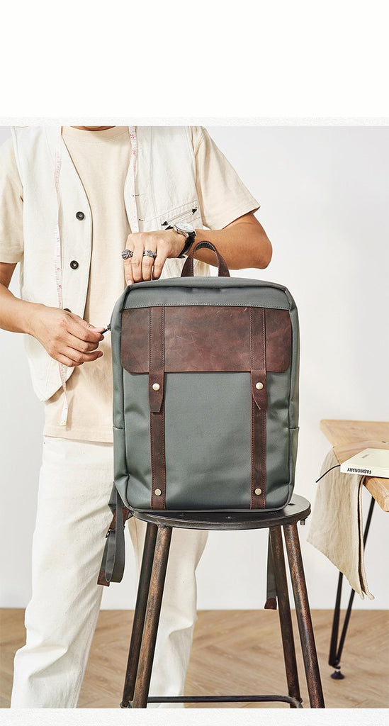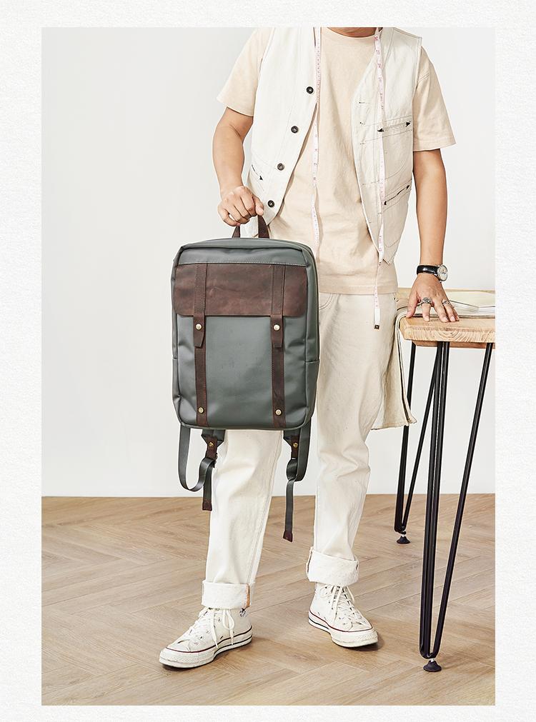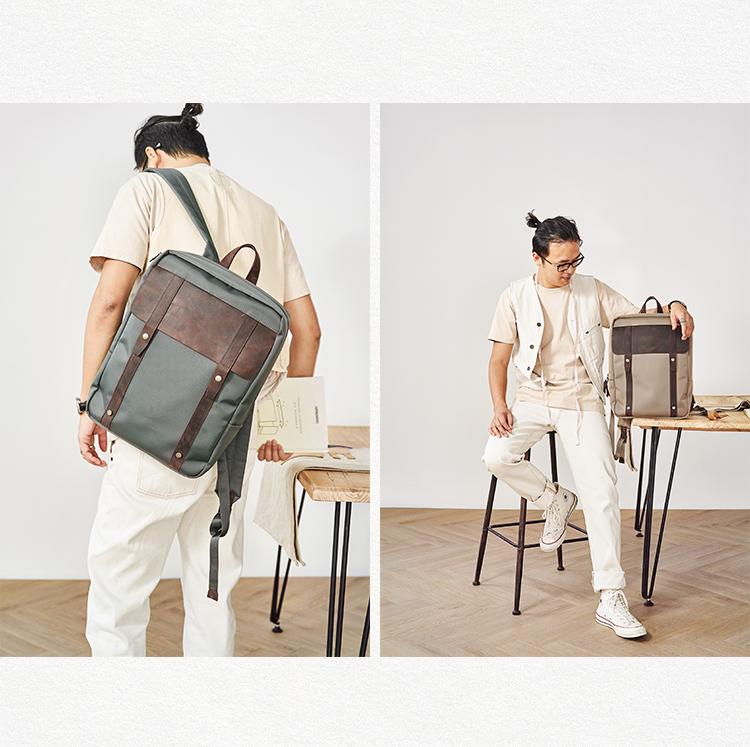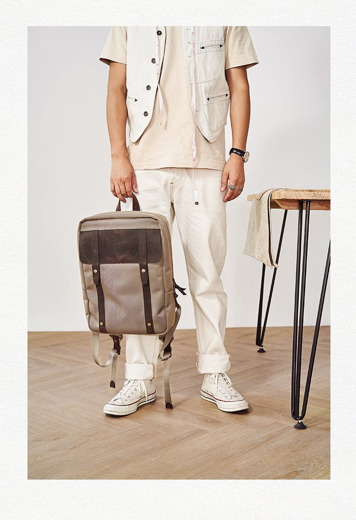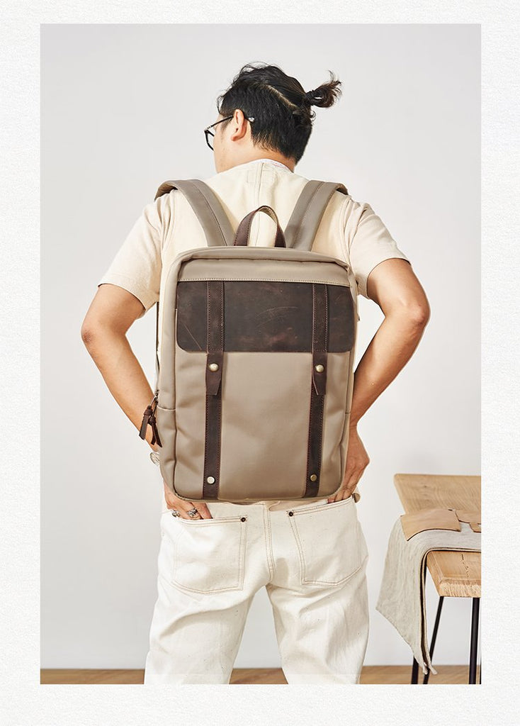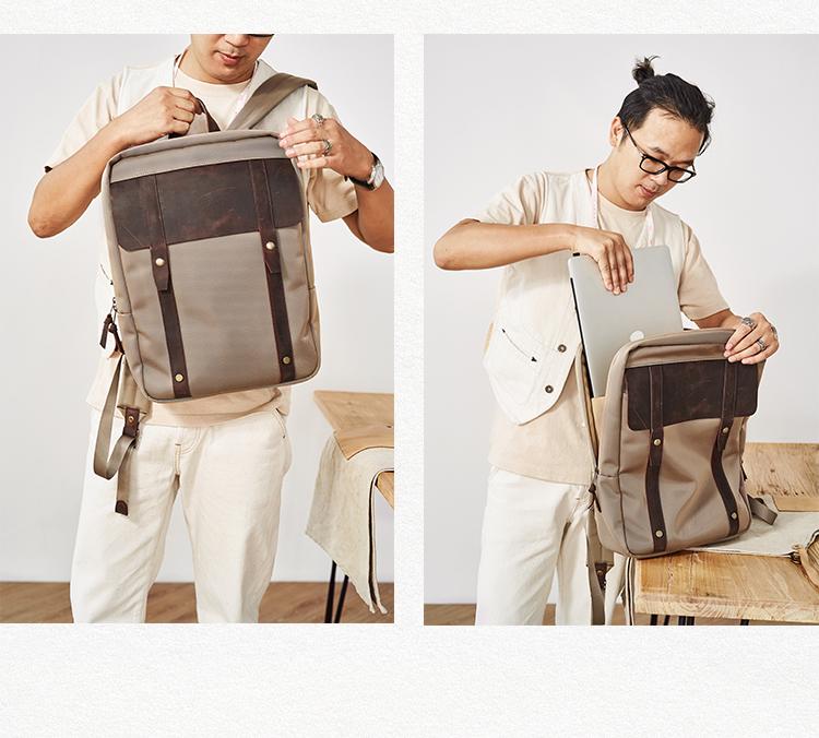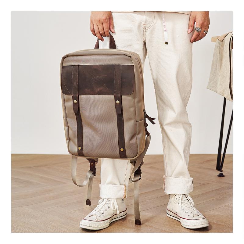 Design: Canvas Mens Cool Backpack Canvas Khaki Travel Bag Canvas Computer Bag for Men
