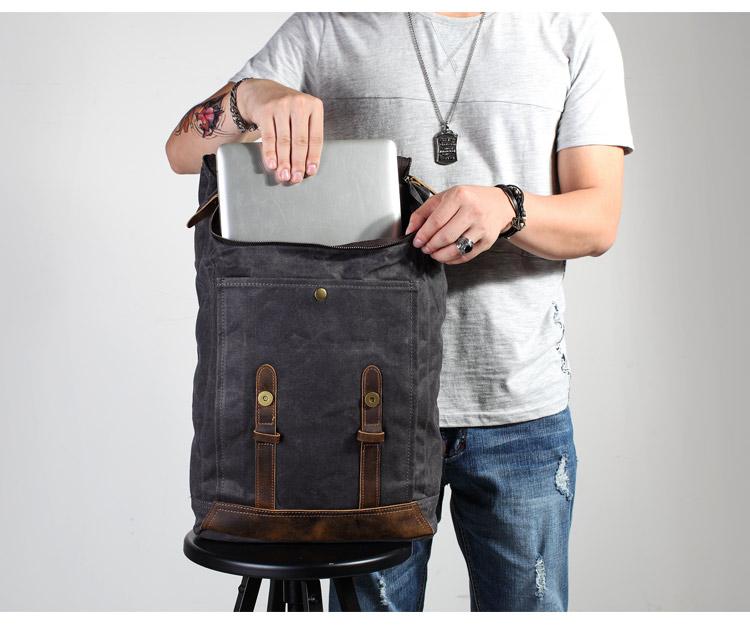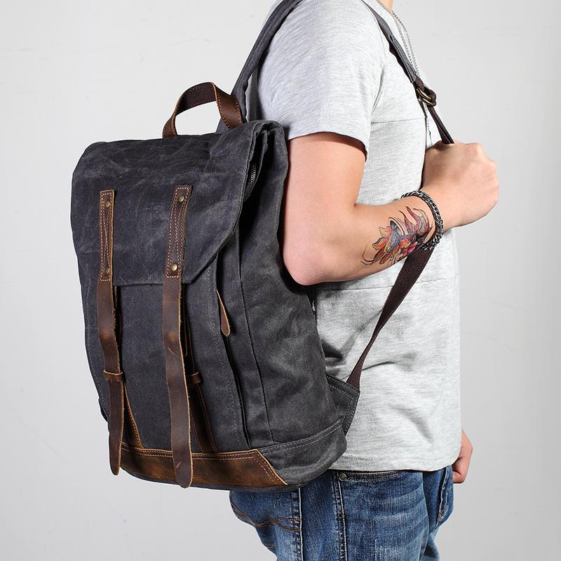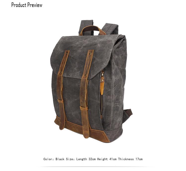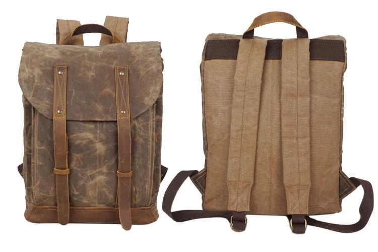 Design: Casual Men's Waxed Canvas Brown School Travel Backpack Laptop Backpack For Men