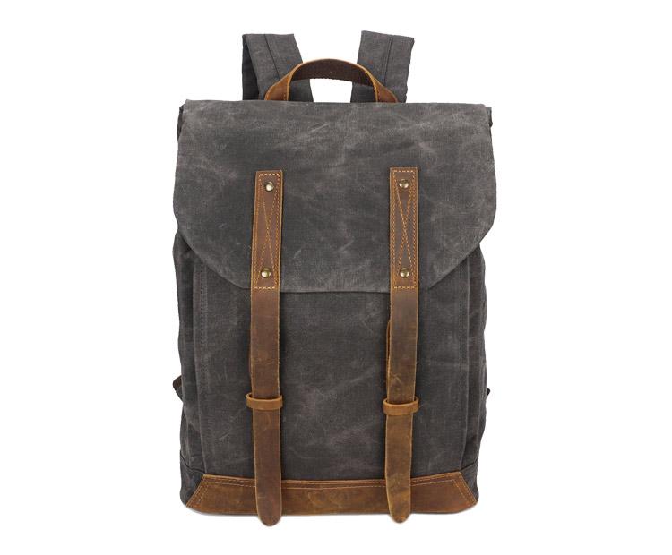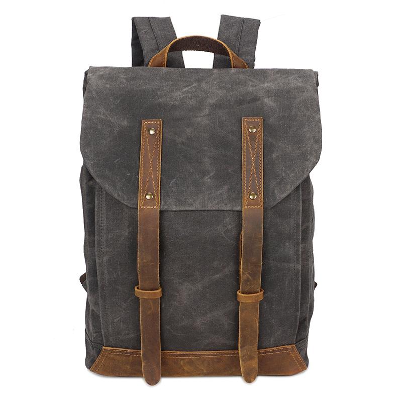 Design: Casual Men's Waxed Canvas Brown School Travel Backpack Laptop Backpack For MenOverview: