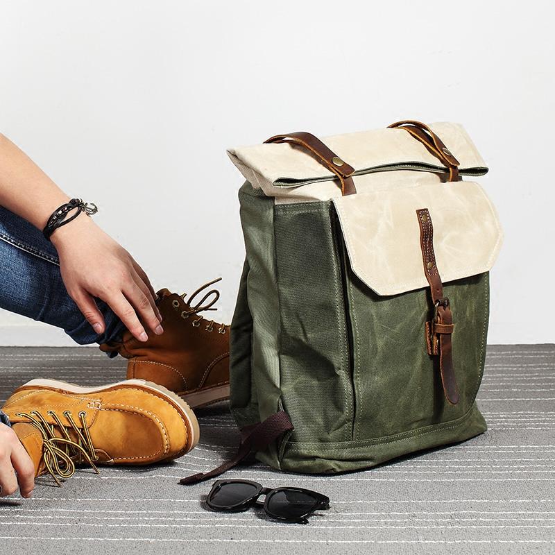 Style: Casual Waxed Canvas Green Men's Travel School Backpack Laptop Backpack For Men